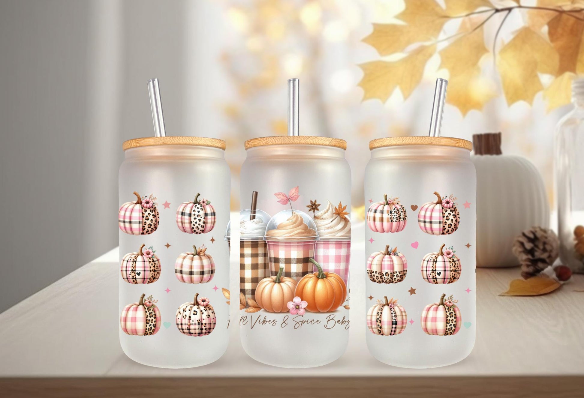 UVDTF Wrap Fall Vibes Spice Baby for 16oz Can Glass or 40oz Tumbler, Iced Coffee, Ready to apply, Permanent adhesive, Double Sided option