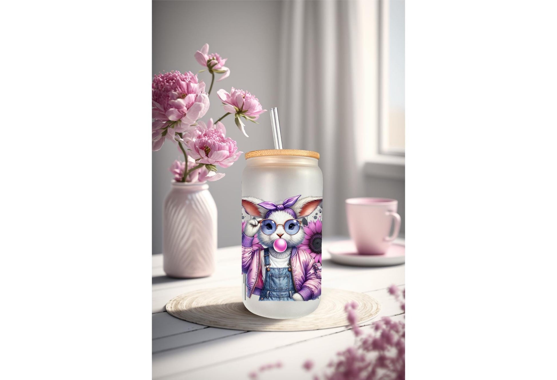 UVDTF Wrap Floral Bunny Bubble Gum 16oz Can Glass Mug Tumbler, Purple Easter Wrap, Ready to Apply, Permanent Waterproof Adhesive