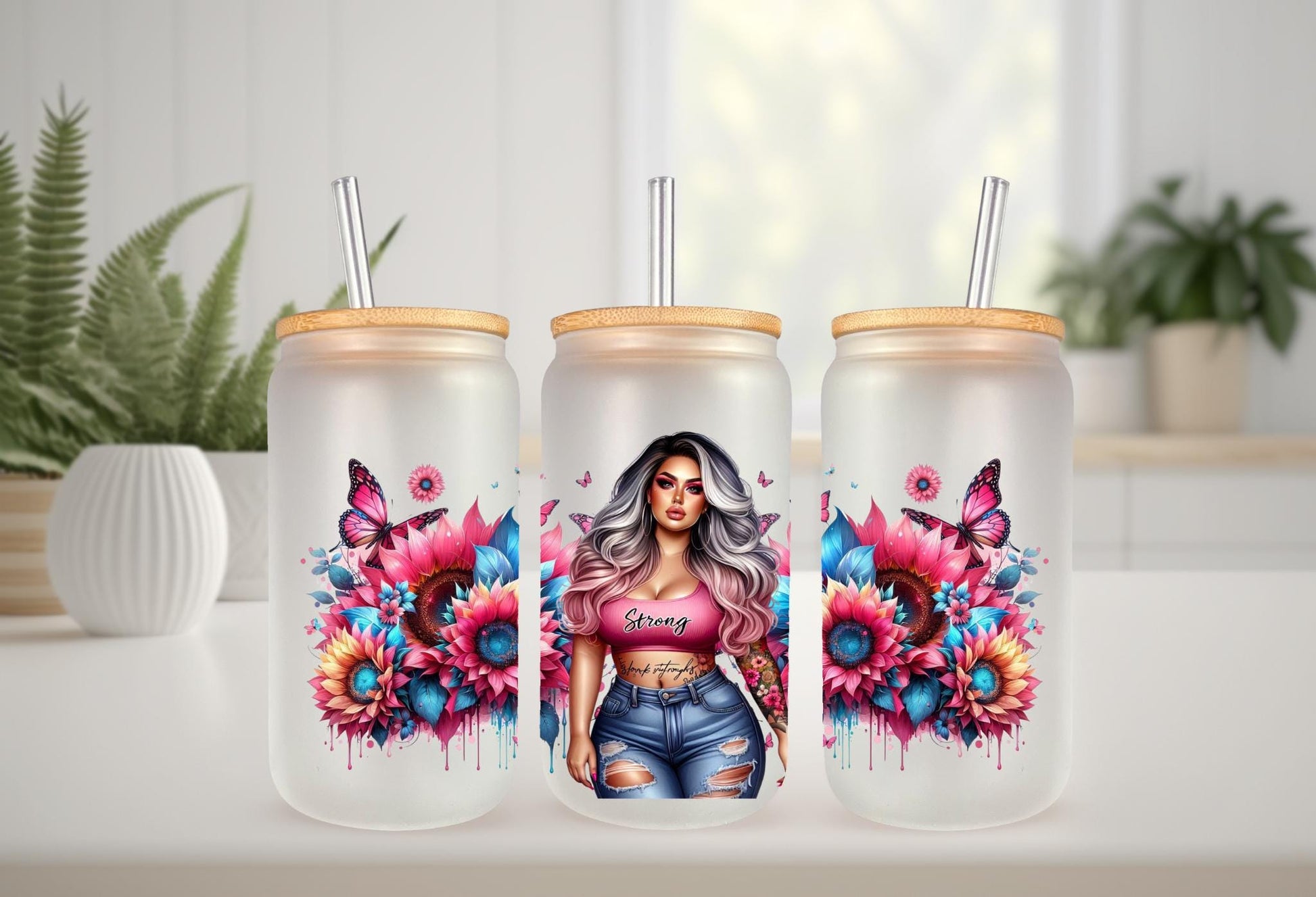 UVDTF Wrap Floral Butterfly Positive Quotes 16oz Can Glass Wrap Mug Tumbler, Strong Girl Wrap, Ready to Apply, Permanent Waterproof Adhesive
