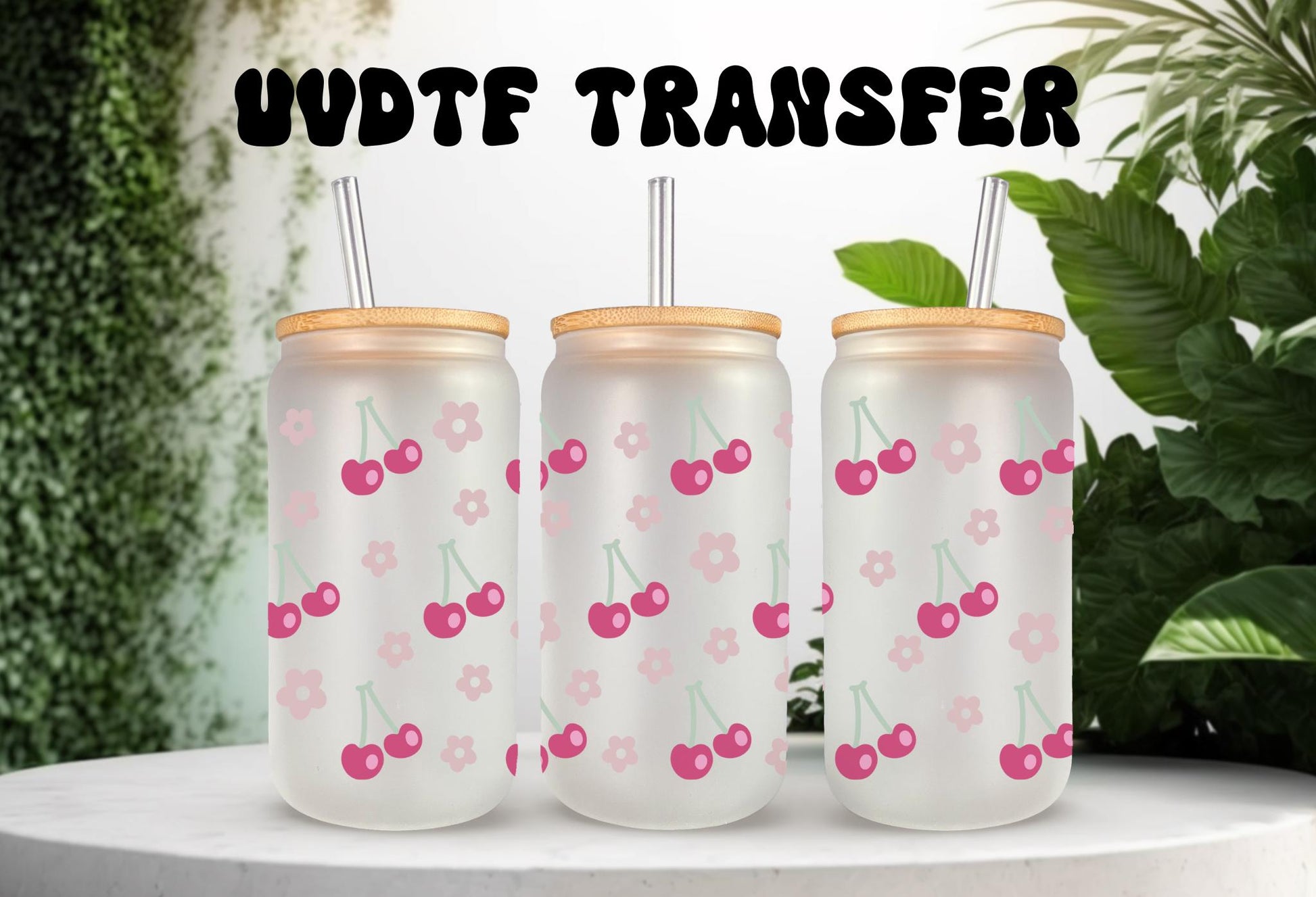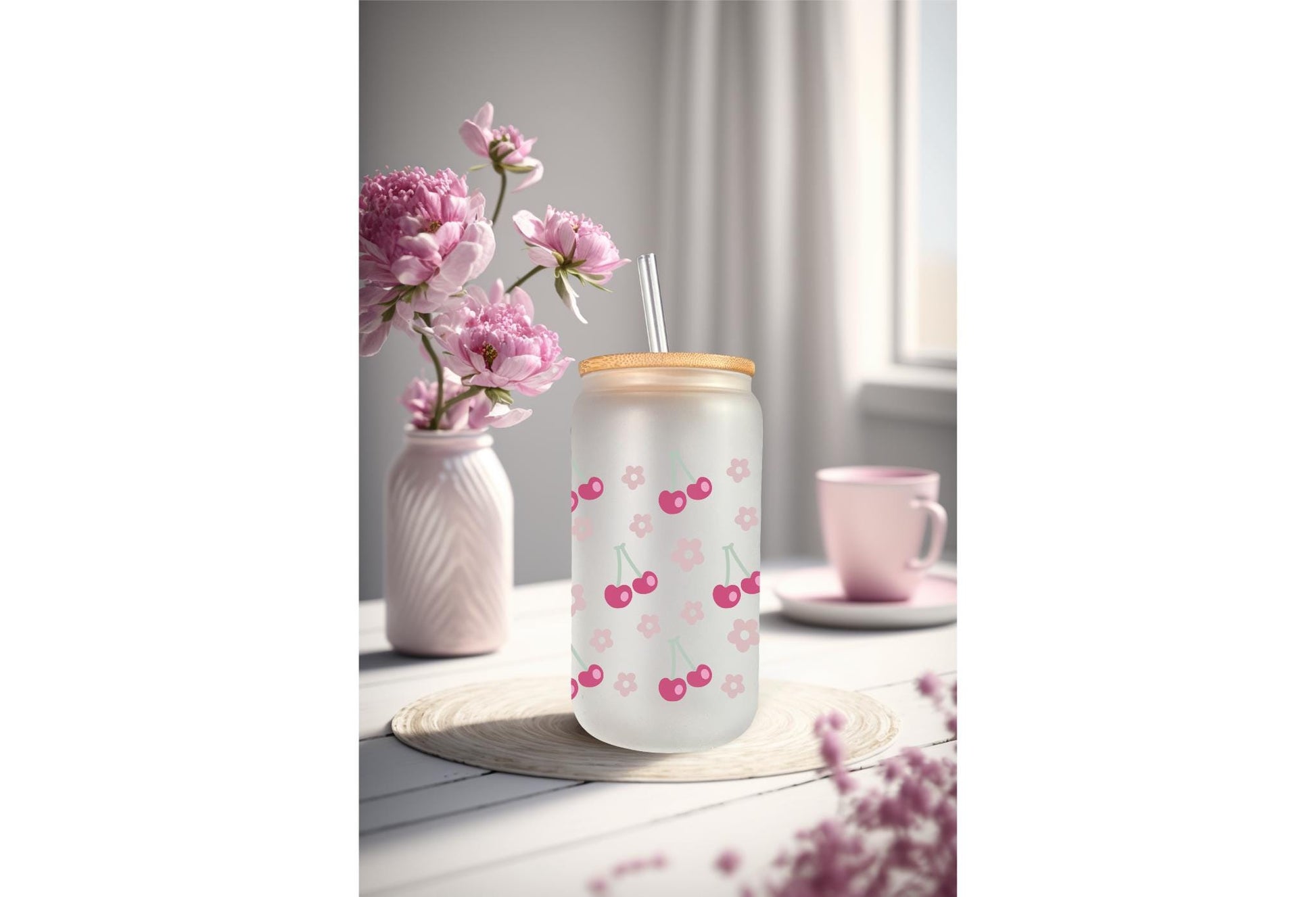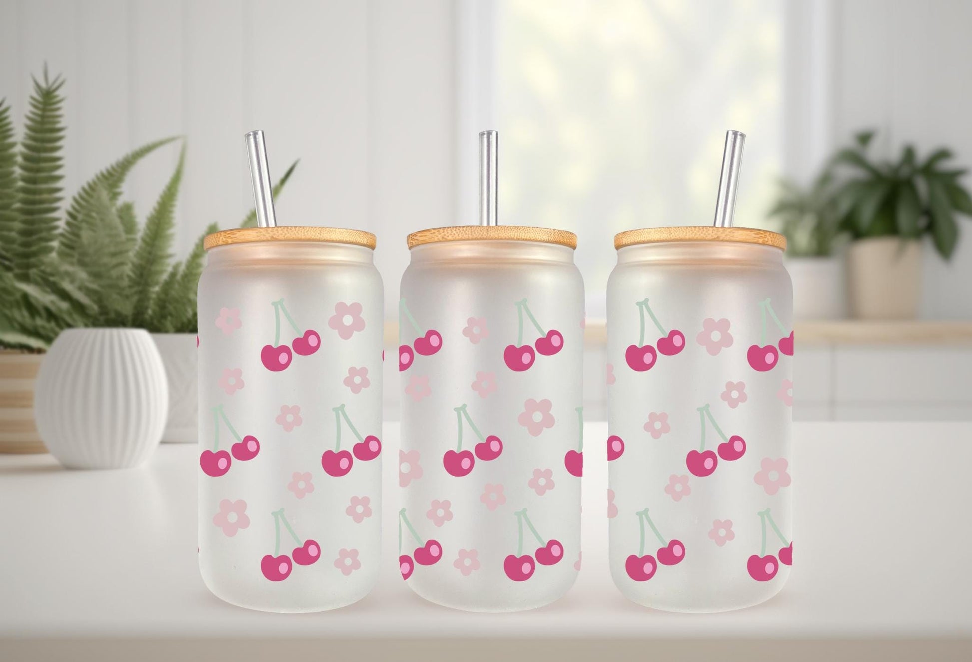 Floral Cherry Wrap - 16oz Can Glass Mug Wrap With Waterproof Permanent Adhesive