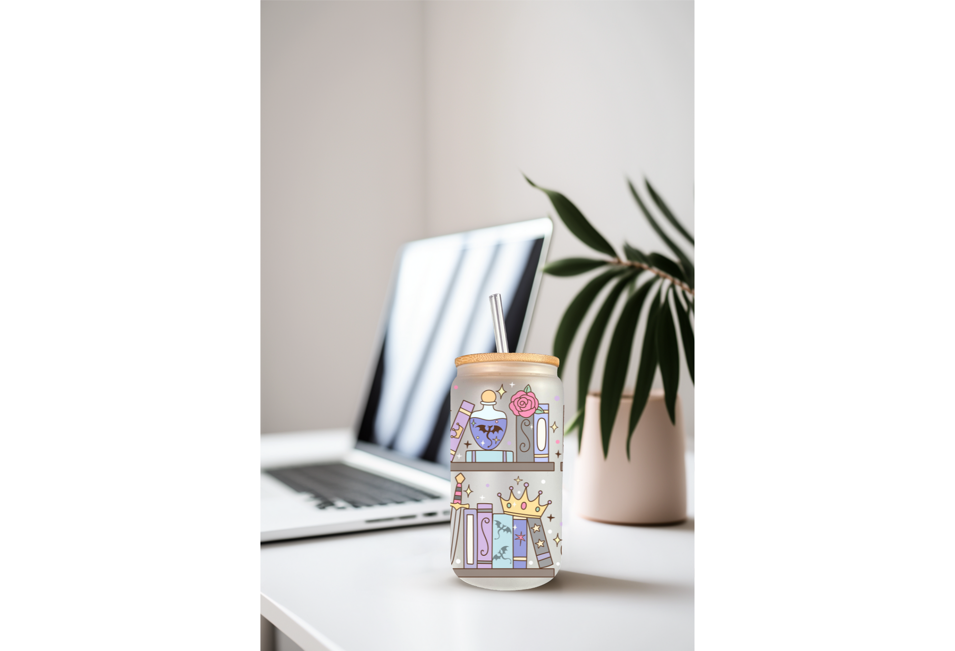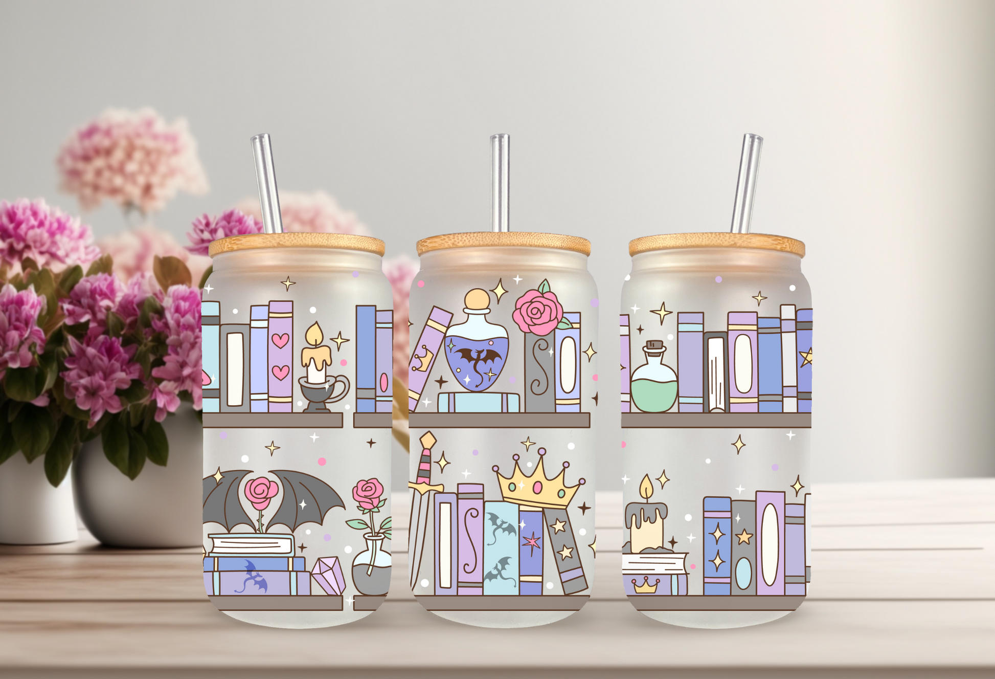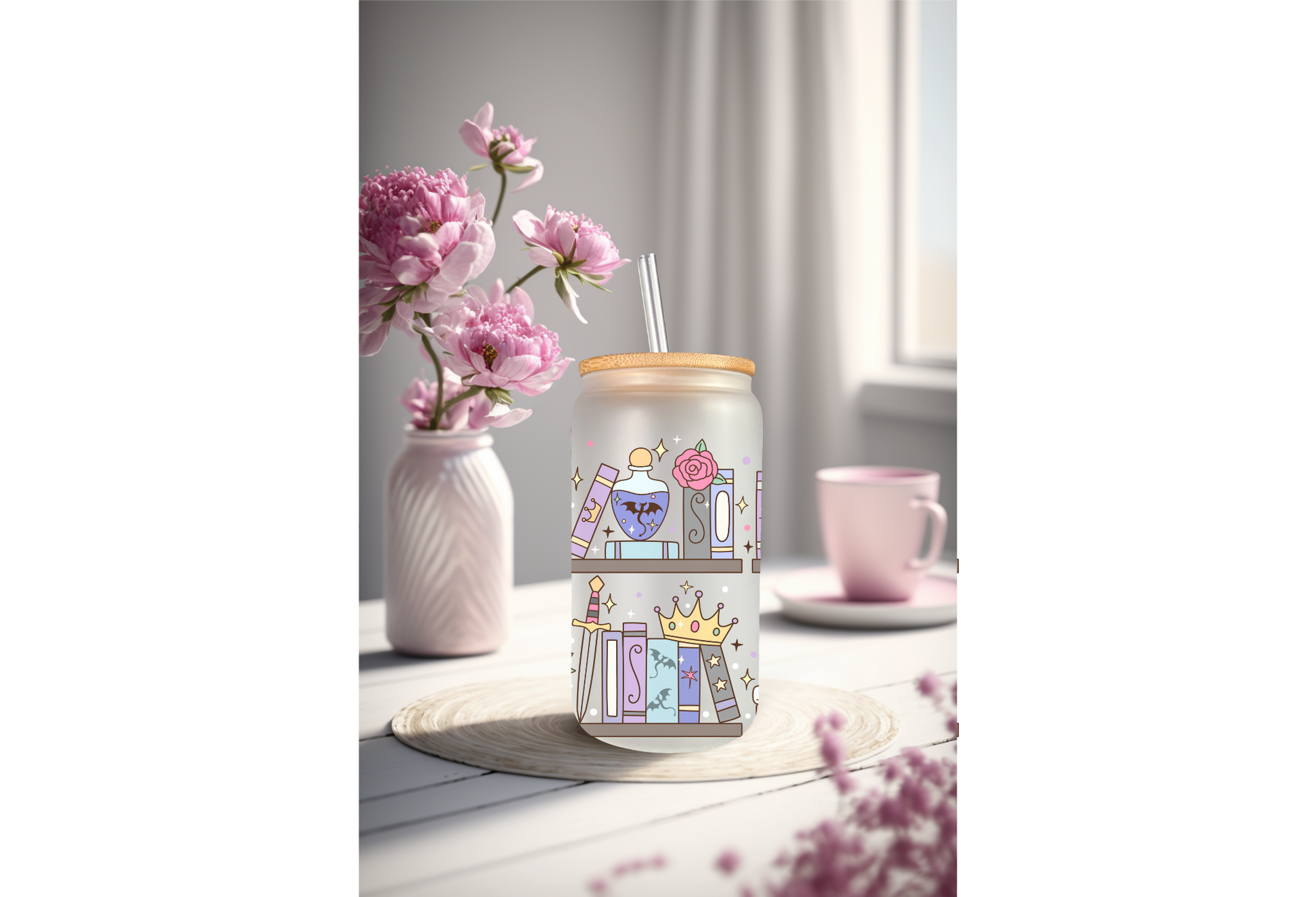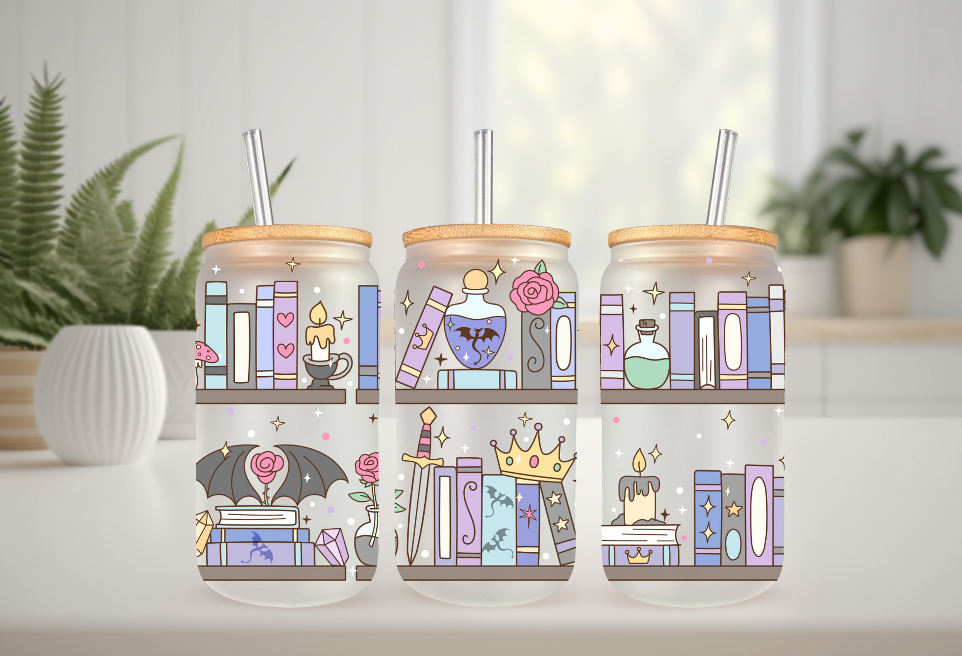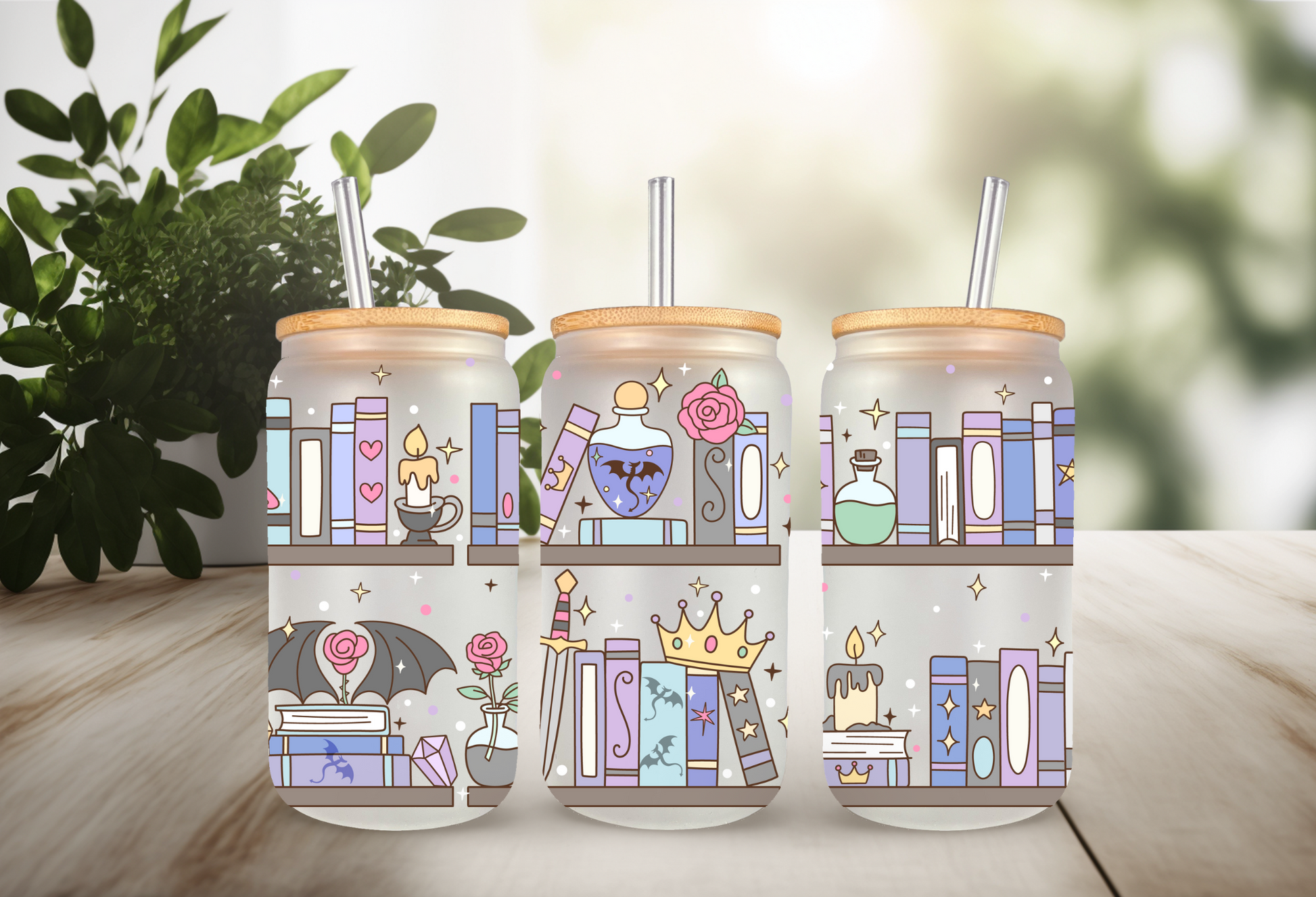 Enhance your drinkware with the UVDTF Wrap Witch Bookshelf 16oz Can Glass Mug Tumbler Wrap. Designed for easy application, this wrap features a permanent waterproof adhesive ensuring long-lasting durability. Its double-sided option allows for versatile decoration, making your cups uniquely stylish while protecting the design from wear. Ideal for personalizing glass mugs and tumblers with expert precision.