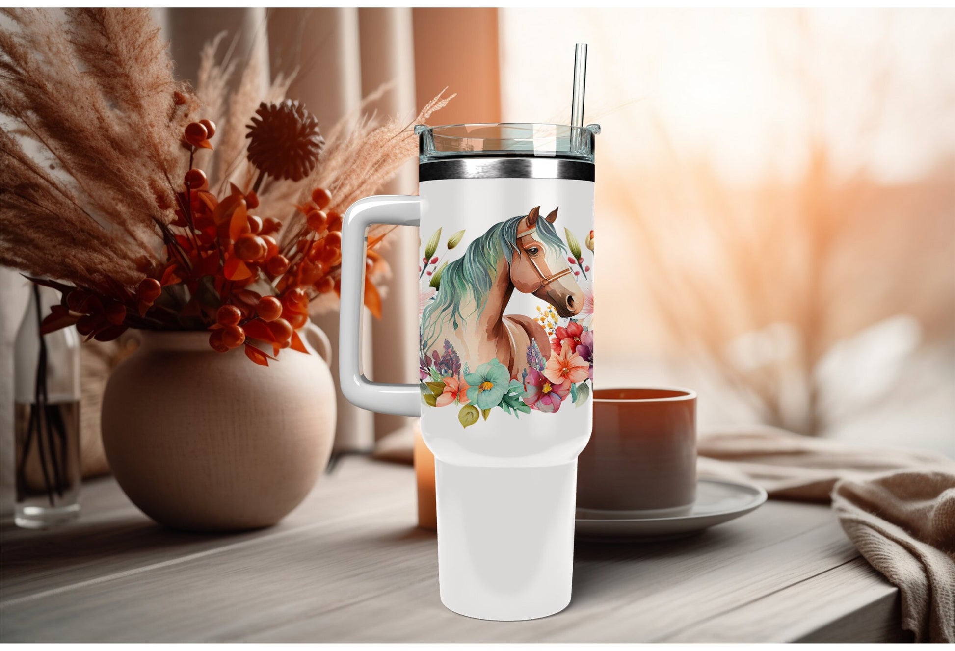 UVDTF Wrap Floral Horse 16oz Can Wrap Mug Mug Tumbler, Floral wrap, Ready to apply, Permanent Adhesive Waterproof, Add on a Cup