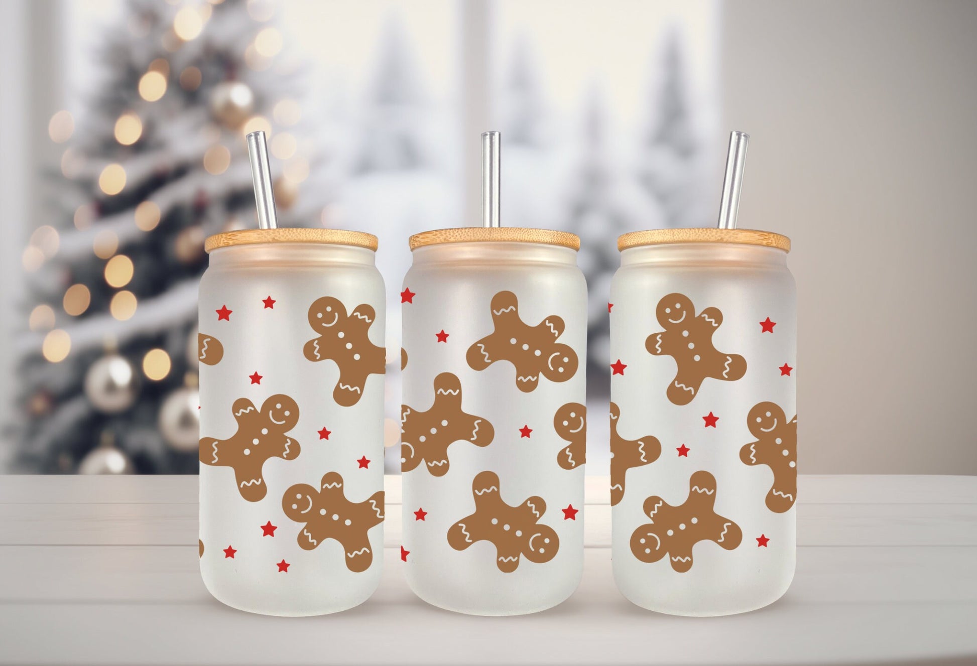 UVDTF Wrap Gingerbread Cookie for 16oz Can Glass, Mug, or Tumbler, Ready to Apply, Permanent Waterproof Adhesive