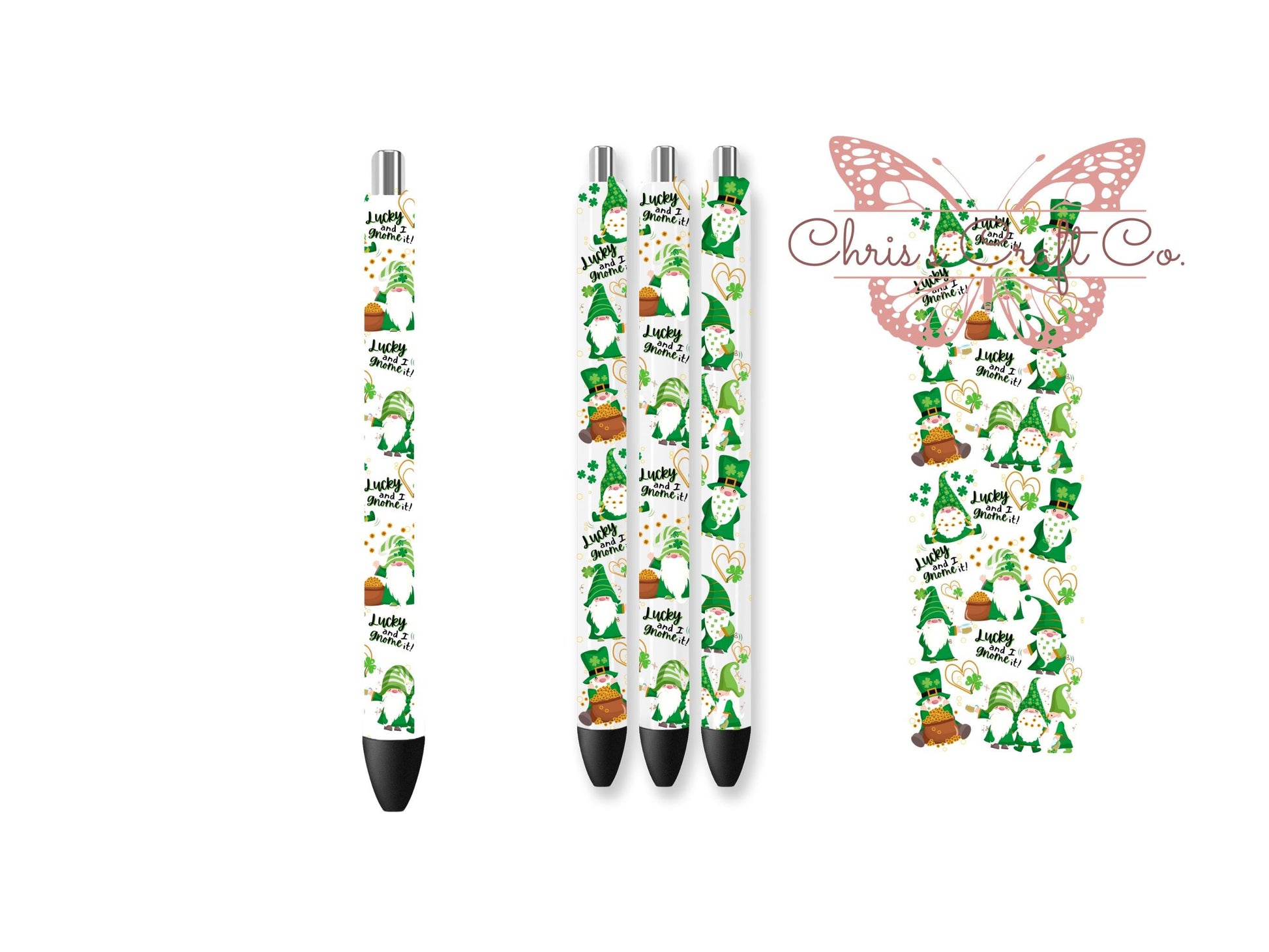 UVDTF Wrap GnomeSt. Patrick’s Day for Ink Joy Glitter Metal Pen, Lucky and I Gnome it Wrap, Ready to apply, Permanent Waterproof Adhesive
