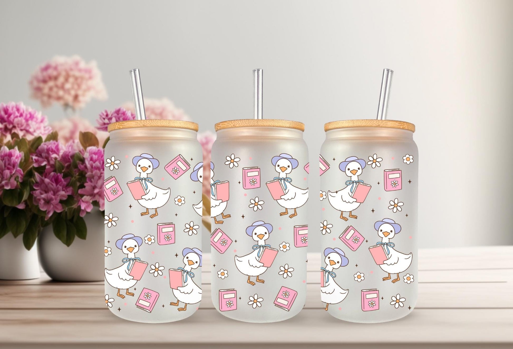 UVDTF Wrap Goose Books 16oz Can Glass Mug Tumbler Wrap, Geese Wrap, Ready to apply, Permanent Adhesive, Double sided option