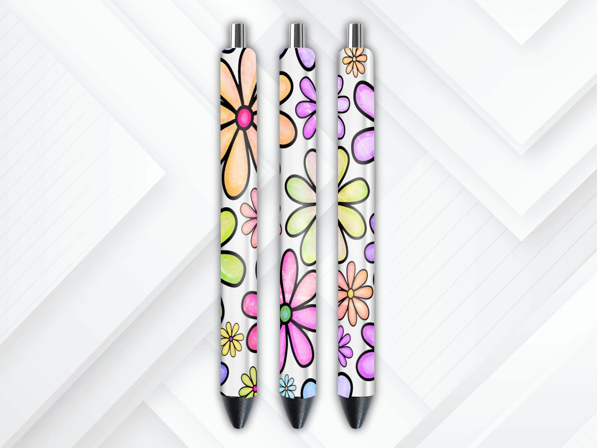UVDTF Pen Wrap Groovy Flowers, Ready to Apply, Permanent Waterproof Adhesive, Bundle and Save