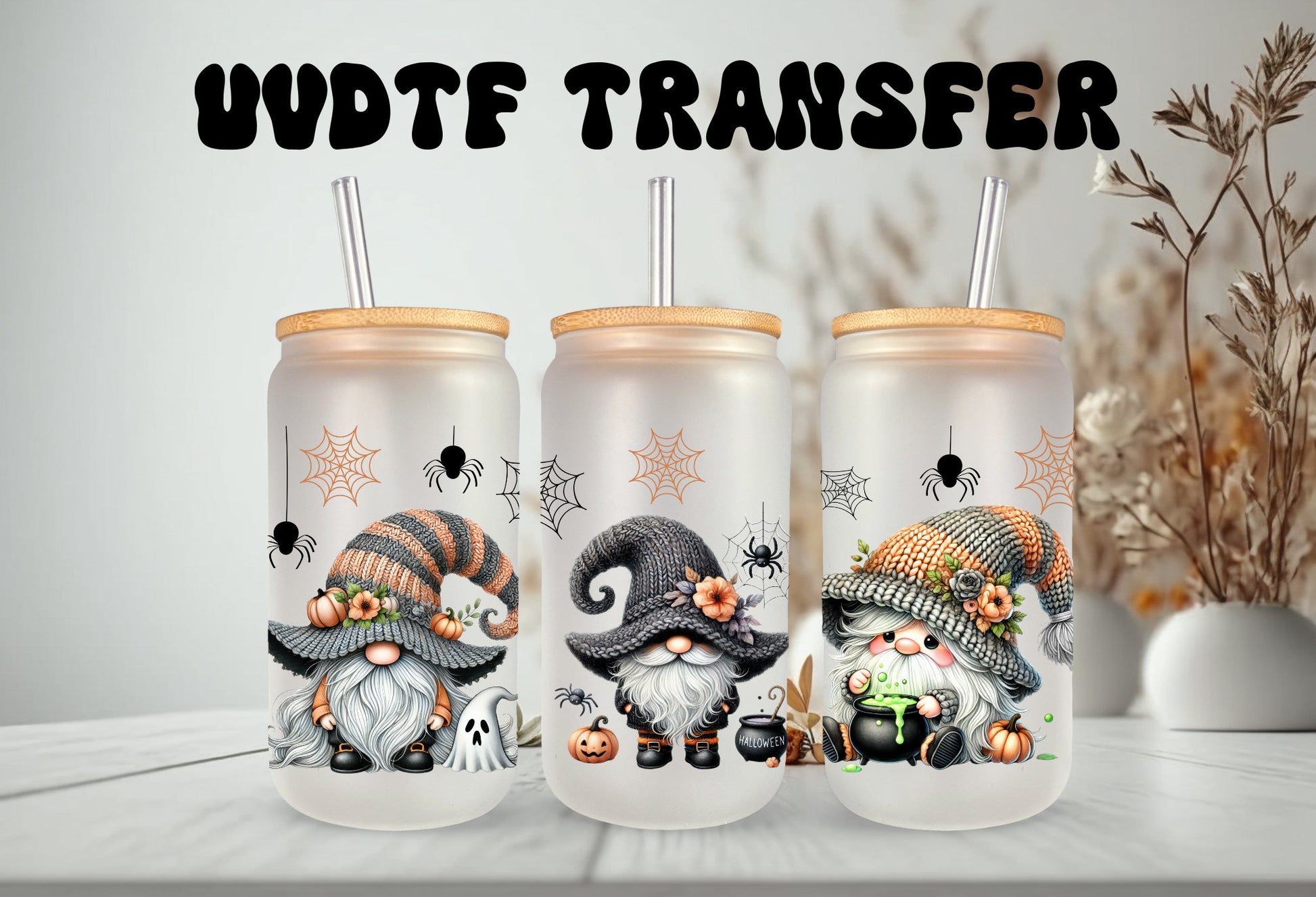 UVDTF Wrap Halloween Gnomes Spider 16 oz Can Glass Mug Tumbler, Gnome Wrap, Ready to apply, Permanent Adhesive, Double sided option