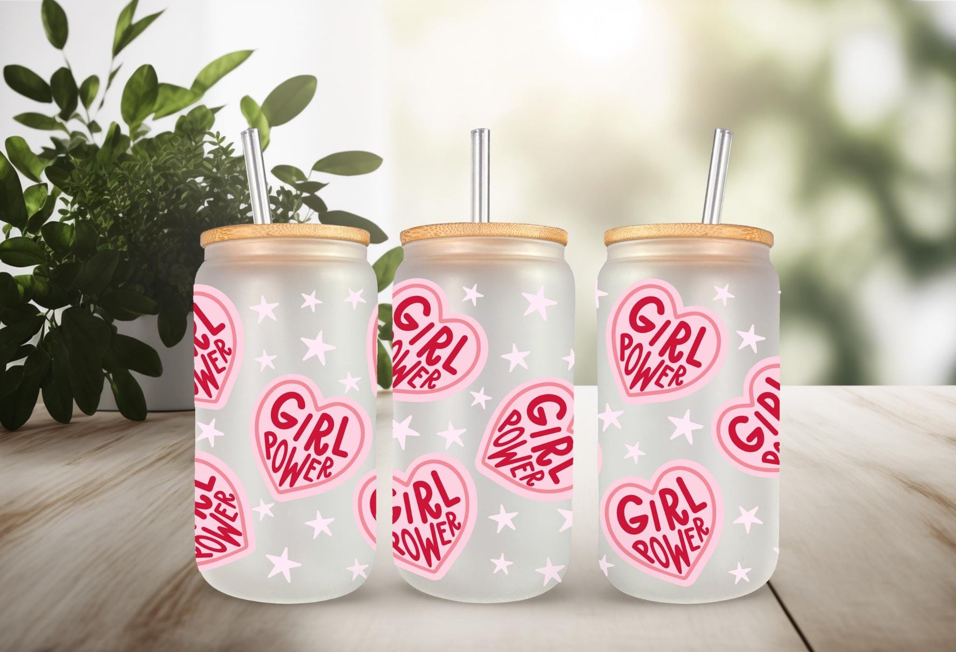 UVDTF Wrap Hearts Girl Power 16oz Can Glass Wrap Mug Tumbler, Ready to Apply, Permanent Waterproof Adhesive