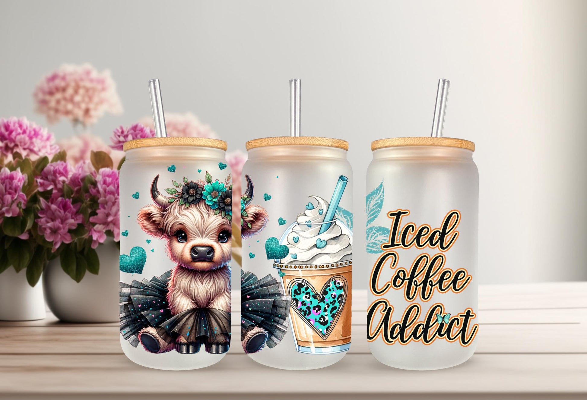 UVDTF Wrap Highland Cow Tutu Iced Coffee