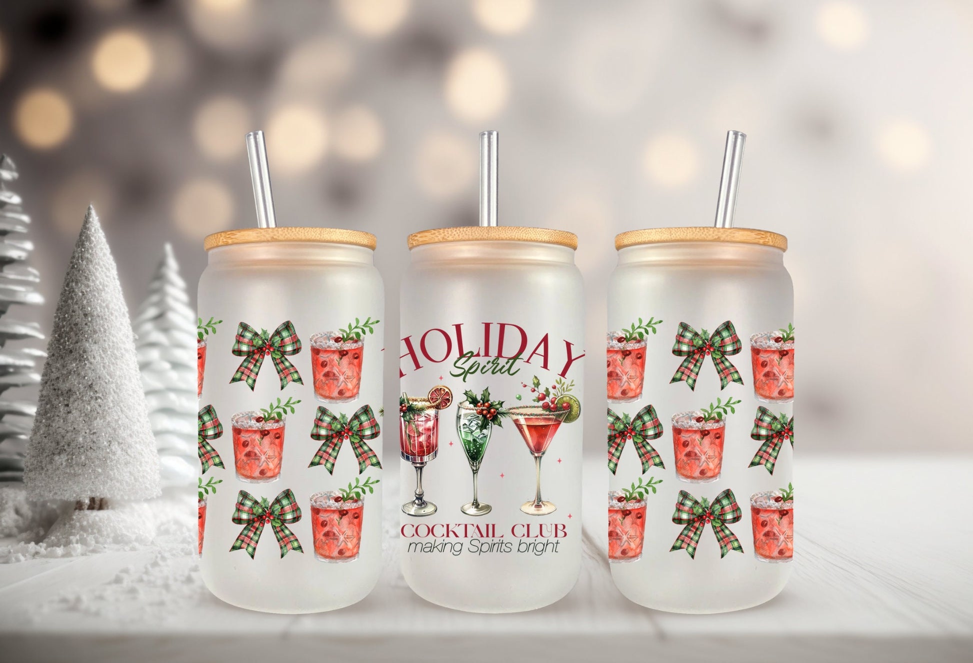 UVDTF Wrap Holiday Spirit Cocktail Club Coquettes Bows 16oz Can Glass, Mug, Tumbler, Ready to Apply, Permanent Waterproof Adhesive