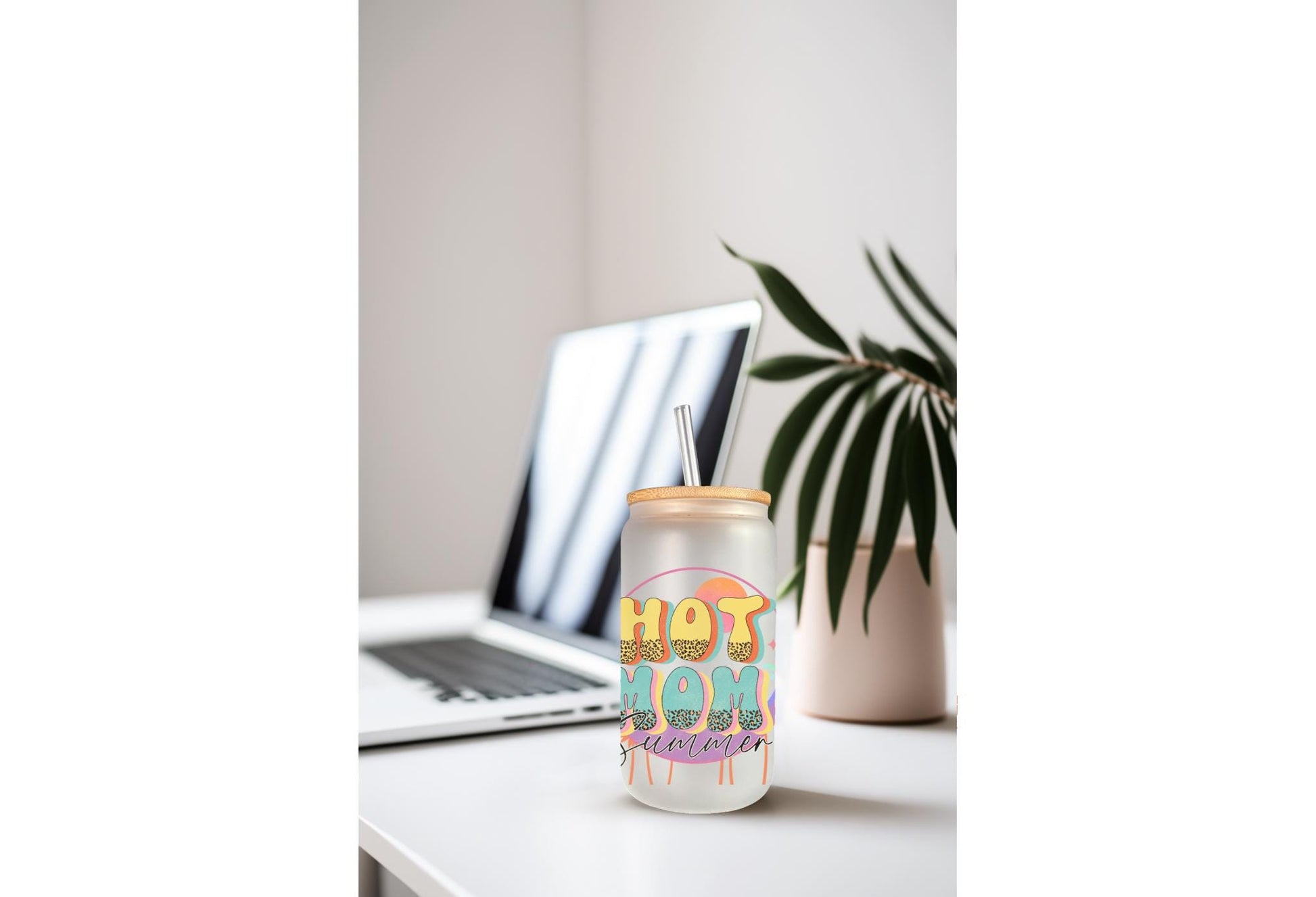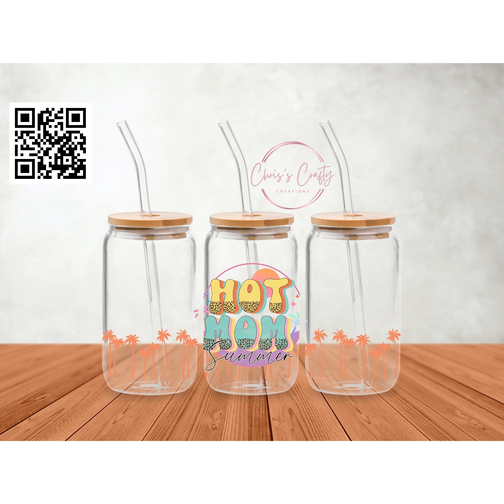This UVDTF Wrap Hot Mom Summer Leopard 16oz Can Glass Mug Tumbler is ready to apply and uses permanent water adhesive. Decorate your cups with ease and create a unique look with this versatile and durable design.
