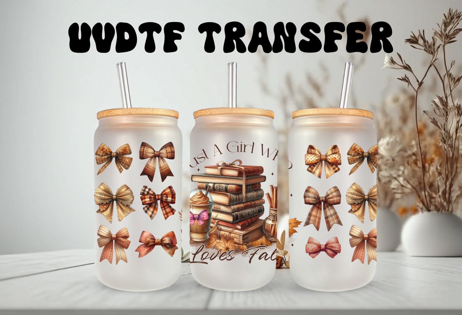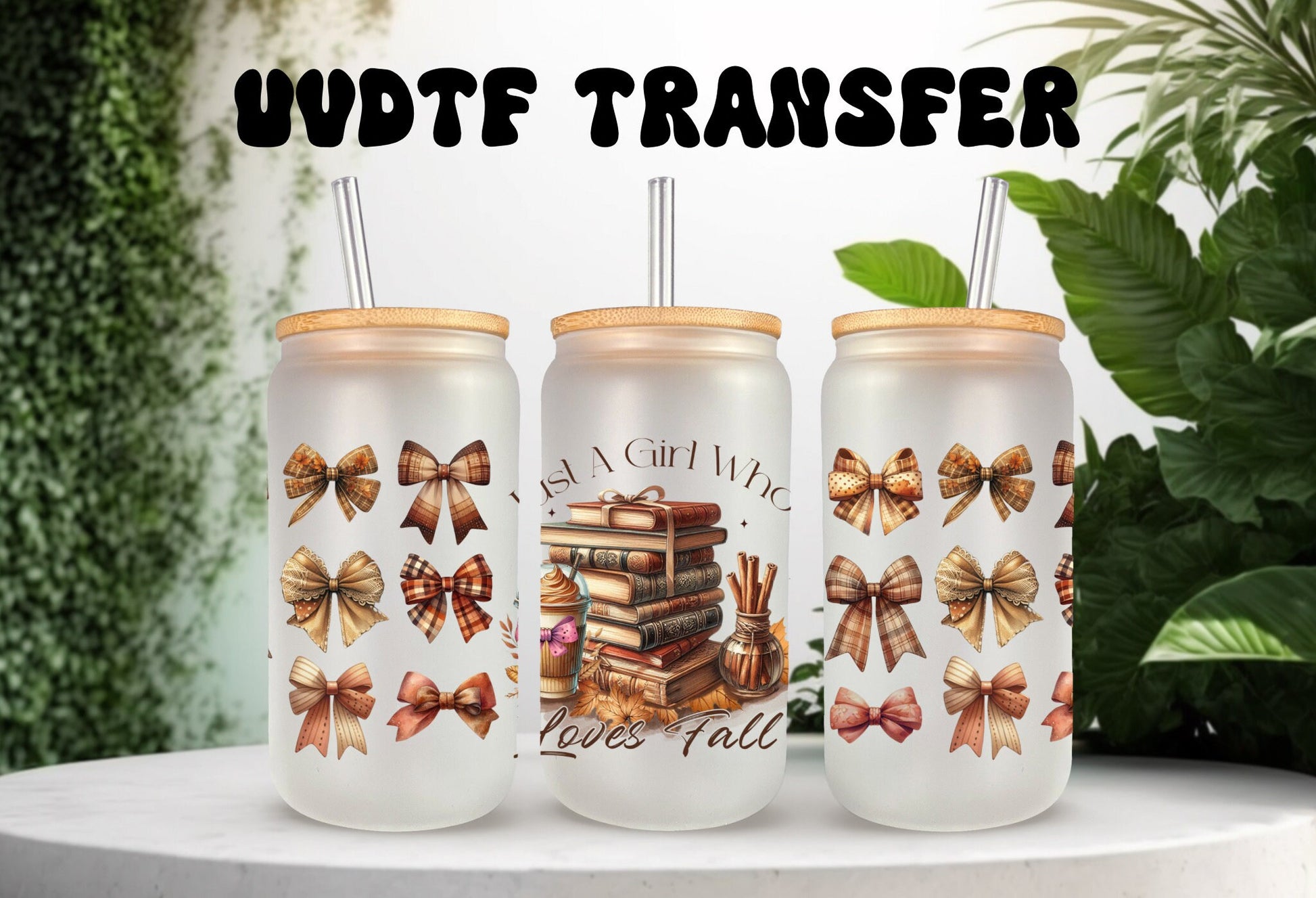 UVDTF Wrap Just a Girl Who Loves Fall Books for 16oz Can Glass or 40oz Tumbler, Ready to apply, Permanent adhesive, Double Sided option