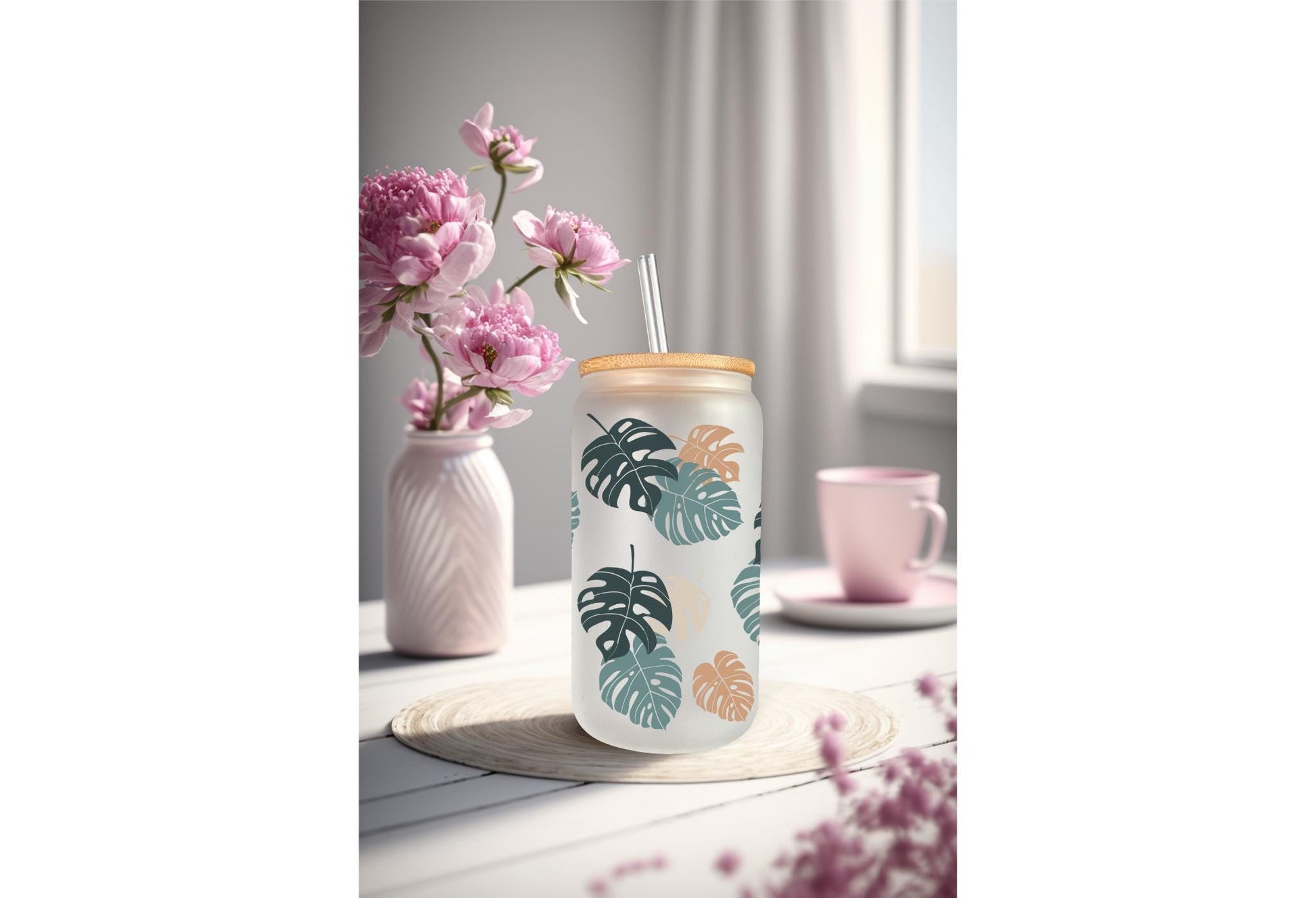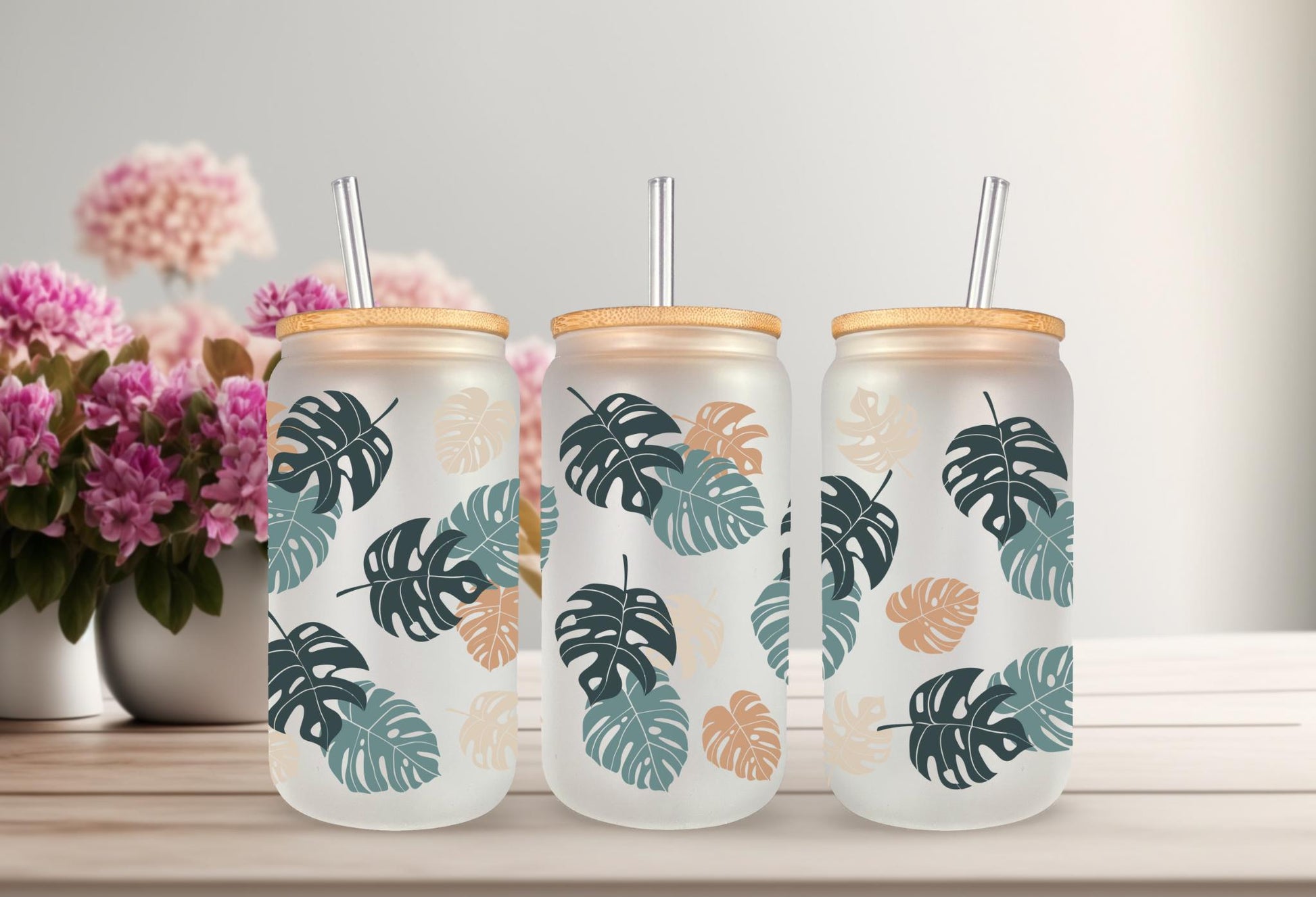 UVDTF Wrap Monstera Houseplants for 16oz Can Glass Mug or Tumbler, Ready to apply, Permanent Waterproof Adhesive. Double sided option