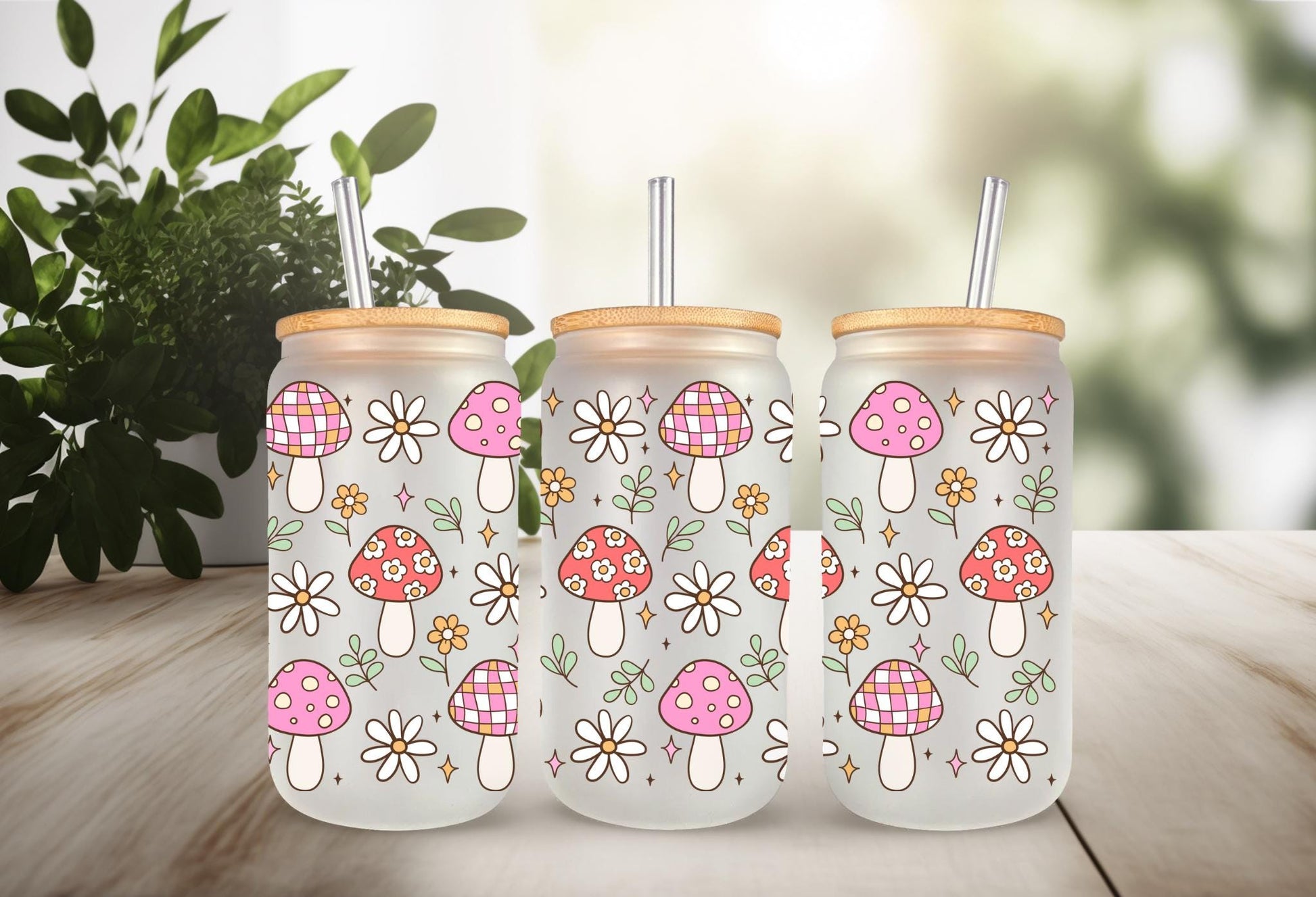 Enhance your drinking experience with our UVDTF Wrap Mushroom Daisy Bow 16oz Can Glass Mug Tumbler. The spring mushroom wrap adds a touch of elegance to your cups, while the permanent waterproof adhesive ensures long-lasting, beautiful decorations. Easy to apply, this tumbler will make every sip feel special.