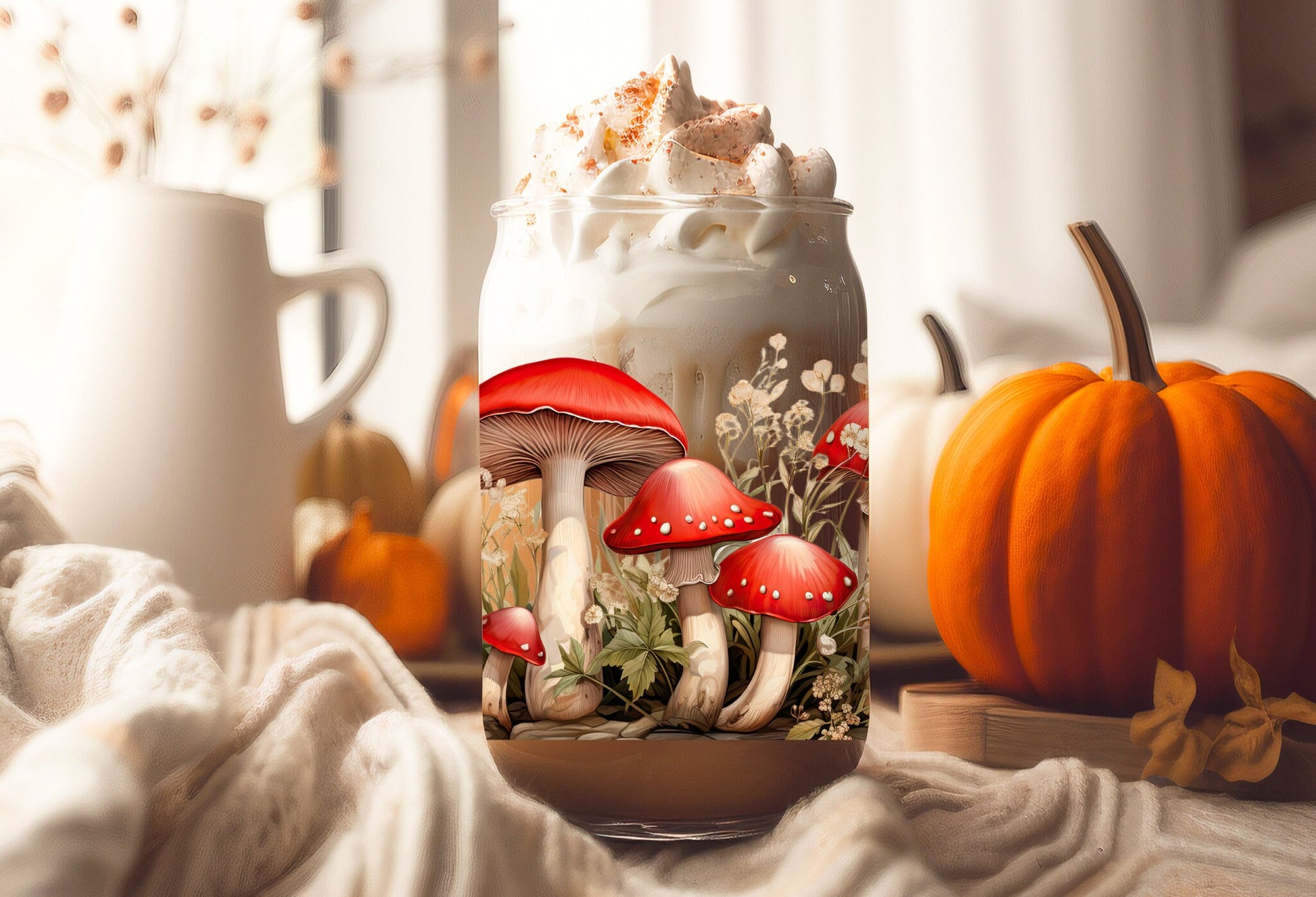 UVDTF Wrap Mushrooms Red Top 16oz Can Glass, Mug, 40oz Tumbler Wrap, Mushroom Wrap, Ready to apply, Permanent Adhesive, Double sided option