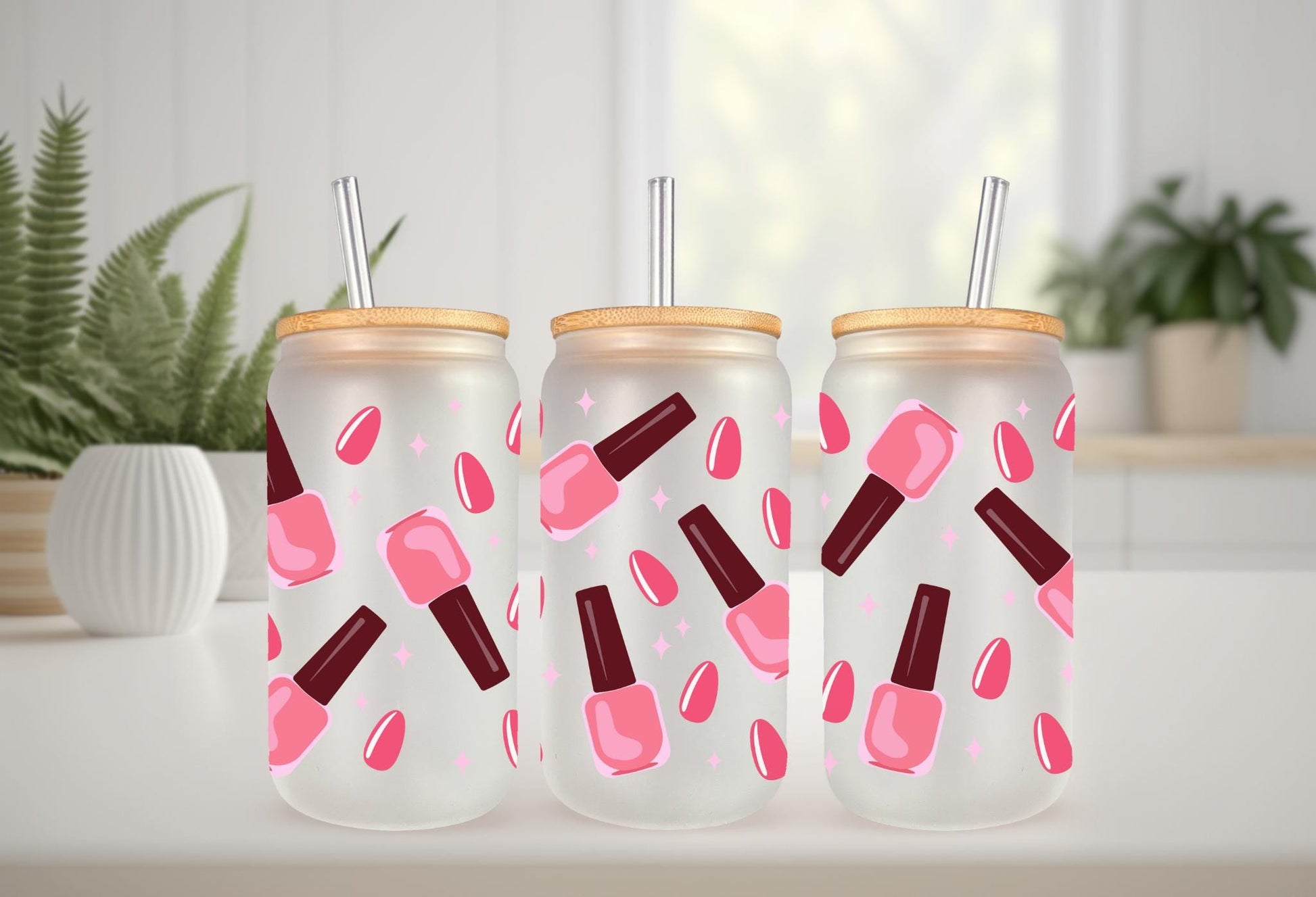 UVDTF Wrap Nail Polish Pink 16oz Can Glass Wrap Mug Tumbler, Nail Polish Wrap, Ready to Apply, Permanent Waterproof Adhesive