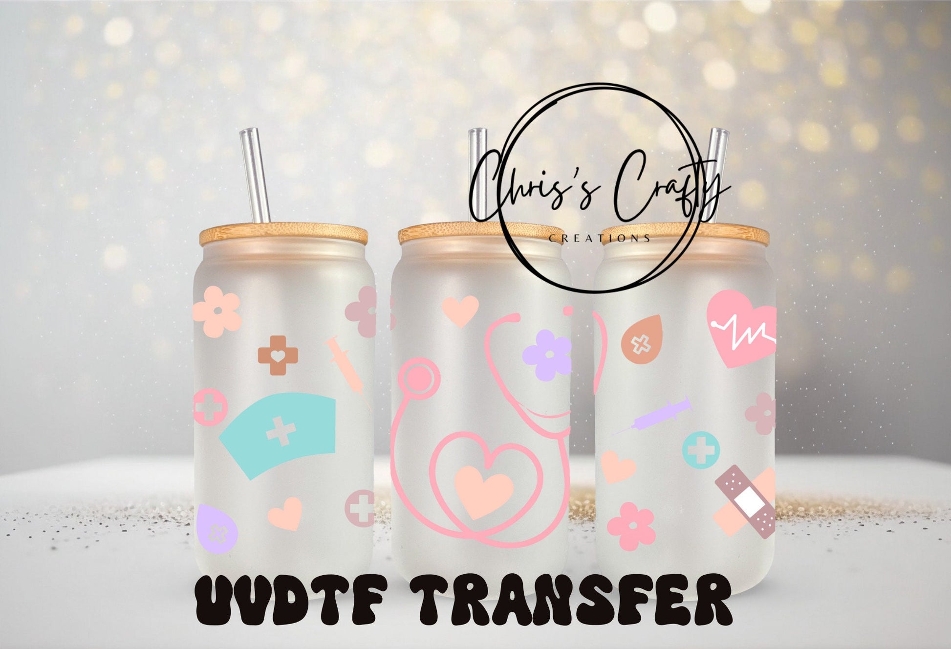 Introducing the UVDTF Wrap Nurse Medical for 16oz Can Glass, Mug, and Tumbler. This ready-to-apply nurse wrap features permanent adhesive, ensuring a long-lasting hold. Perfect for medical professionals, this wrap offers easy customization and protection for your preferred beverage container.
