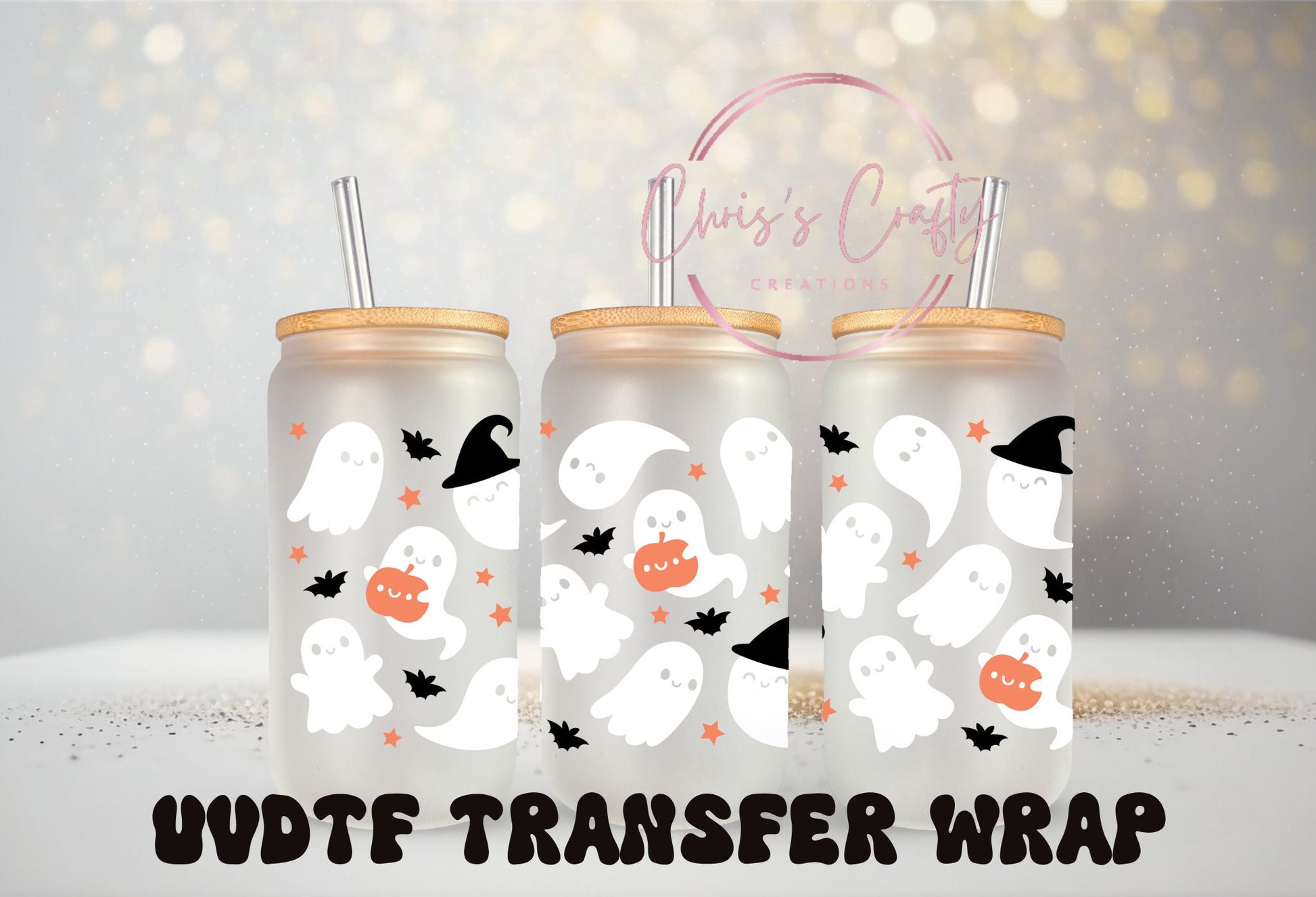 UVDTF Wrap Cute Ghost and Pumpkin for 16oz Can Glass Mug Tumbler, Ready to apply, Permanent Waterproof Adhesive