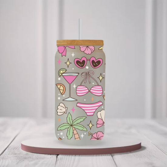 UVDTF Wrap Girly Flamingo Beaches 16oz Can Glass Mug Tumbler, Ready to apply, Permanent Waterproof Adhesive, Add on a Cup
