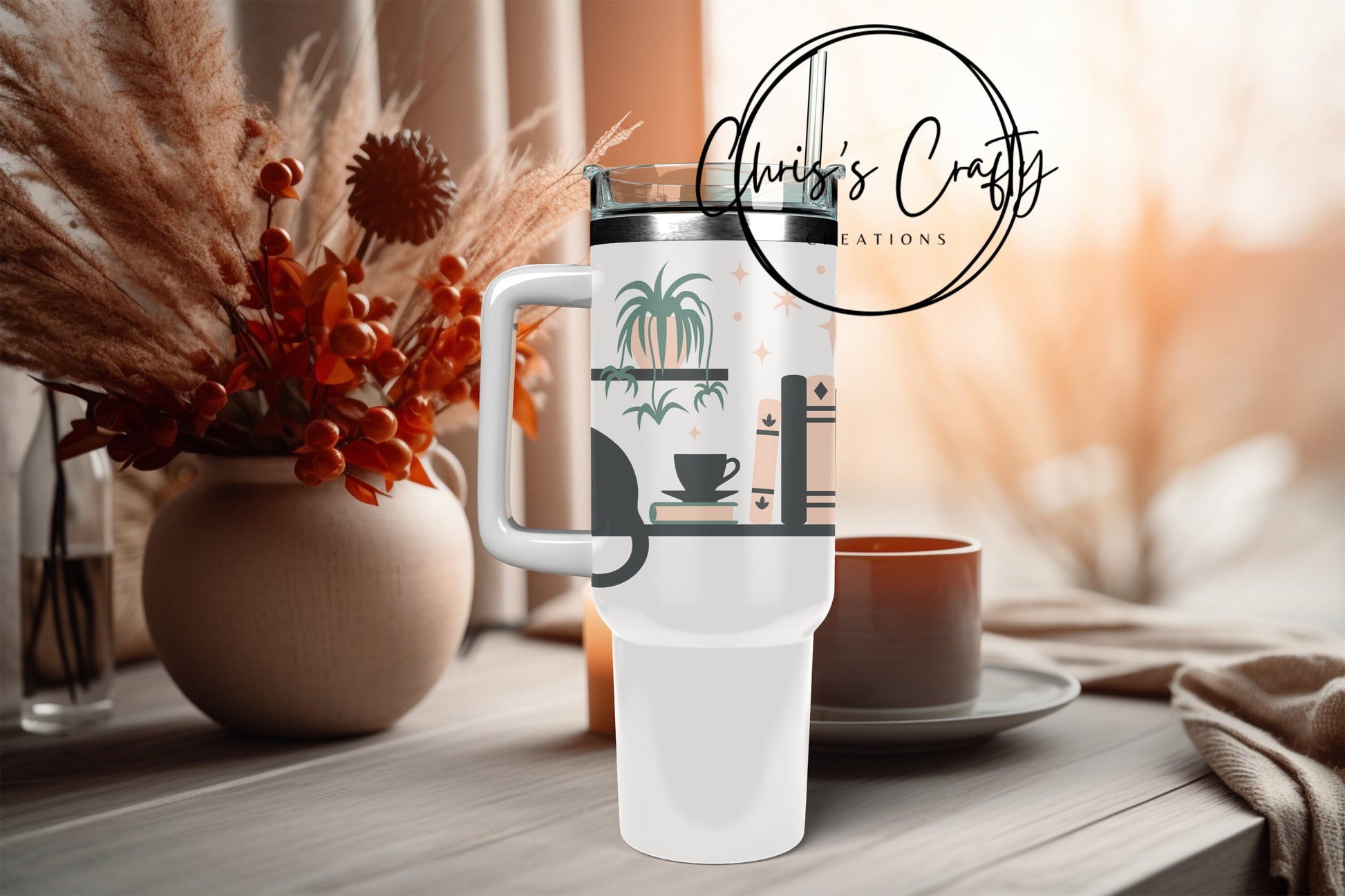 UVDTF Wrap Retro Cat Books Plants for 16oz 20oz Can Glass Wrap, Ready to apply, Permanent Waterproof Adhesive