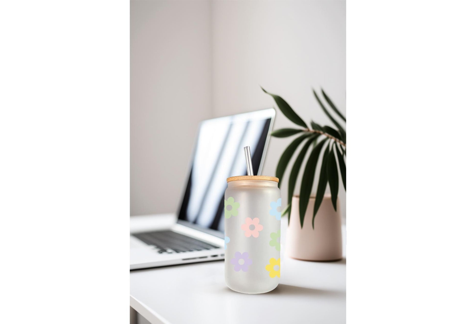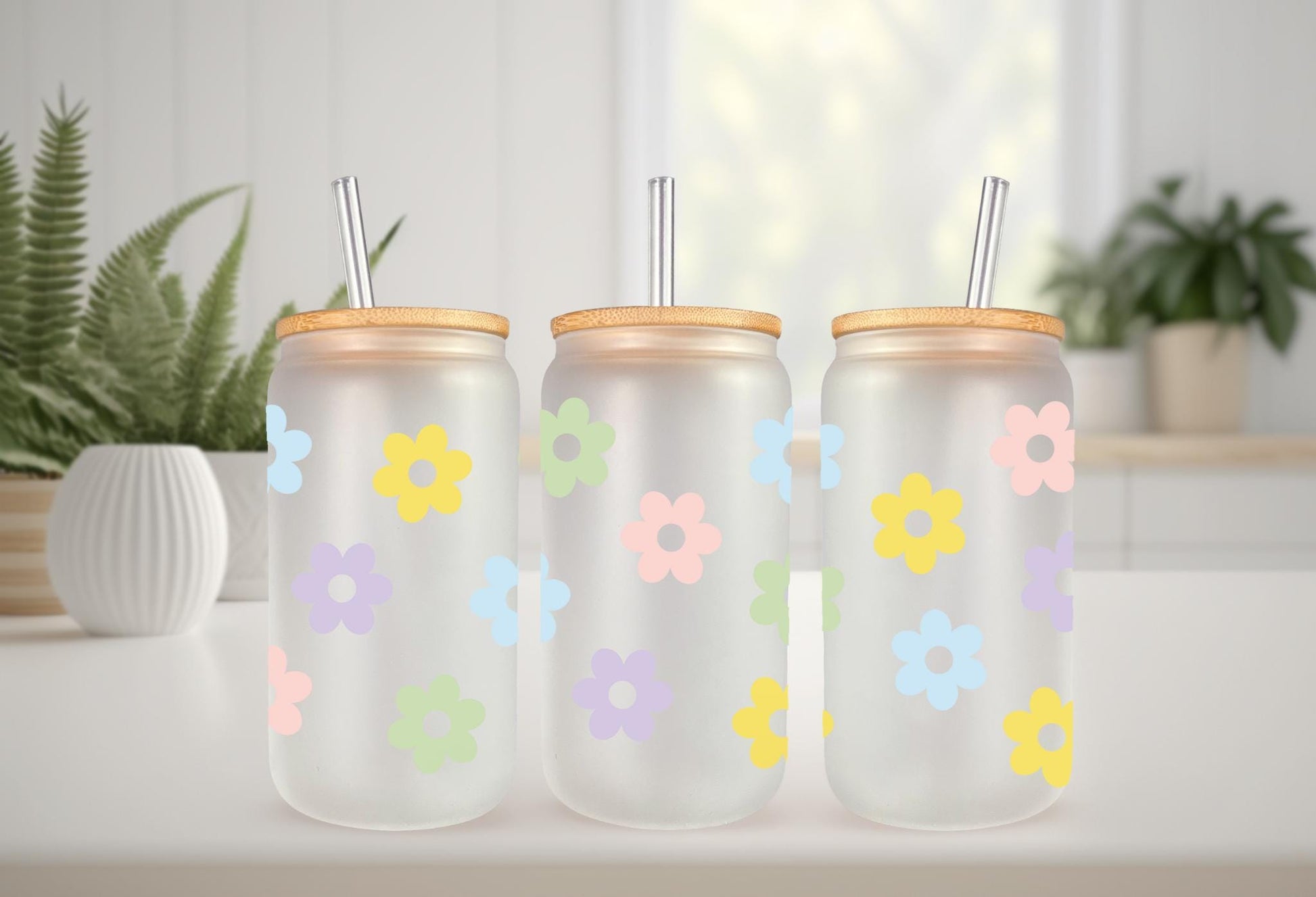 UVDTF Wrap Retro Flowers 16oz Can Glass Mug Tumbler, Floral Wrap, Ready to apply, Permanent Waterproof Adhesive