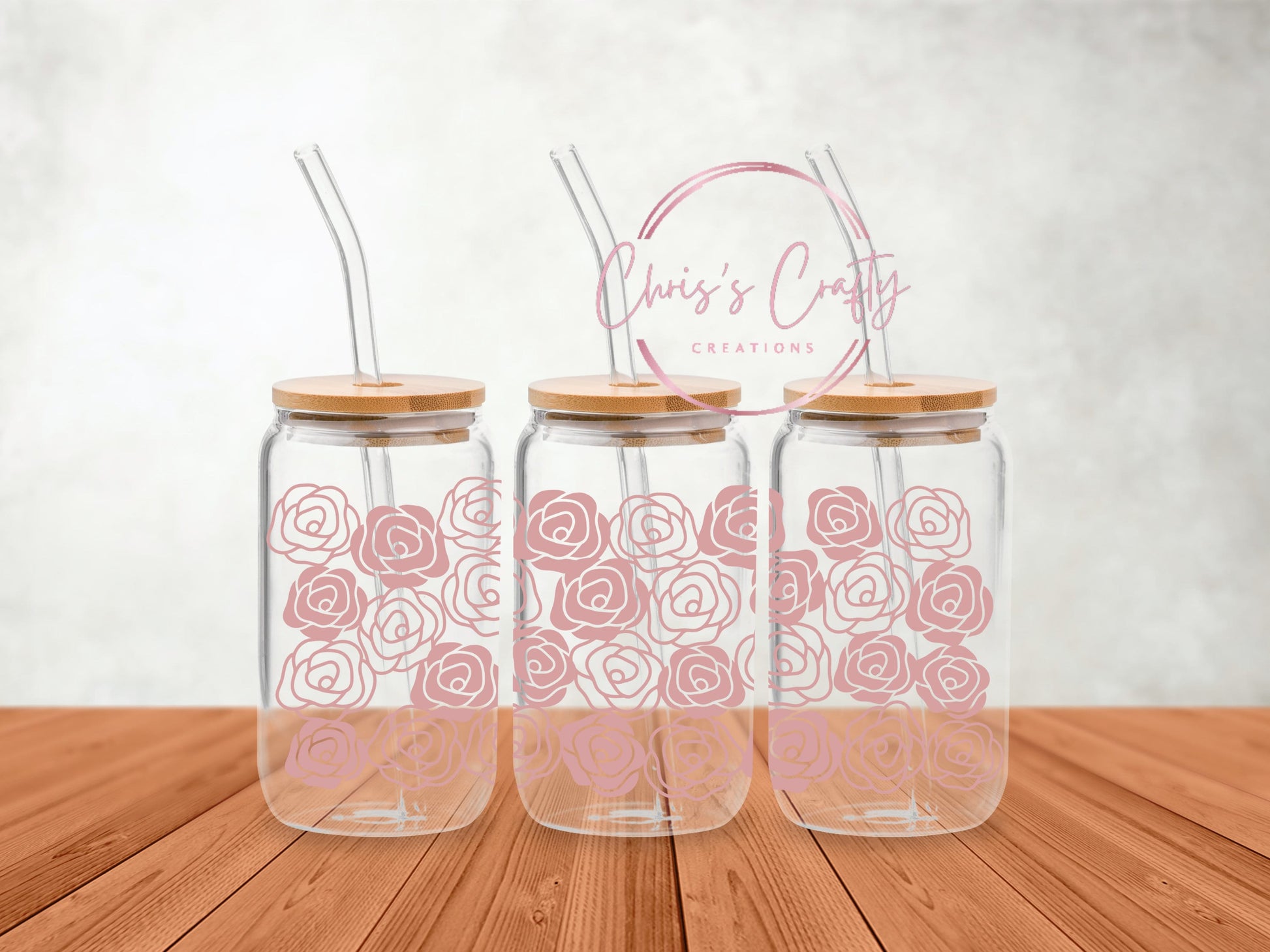 Enhance the look of your glassware with our UVDTF Wrap Roses in Mauve Pink. Our easy-to-apply wraps feature a beautiful floral rose design and a permanent adhesive. Perfect for decorating 16oz cans, glasses, and tumblers. Elevate your drinkware game with these stunning wraps.