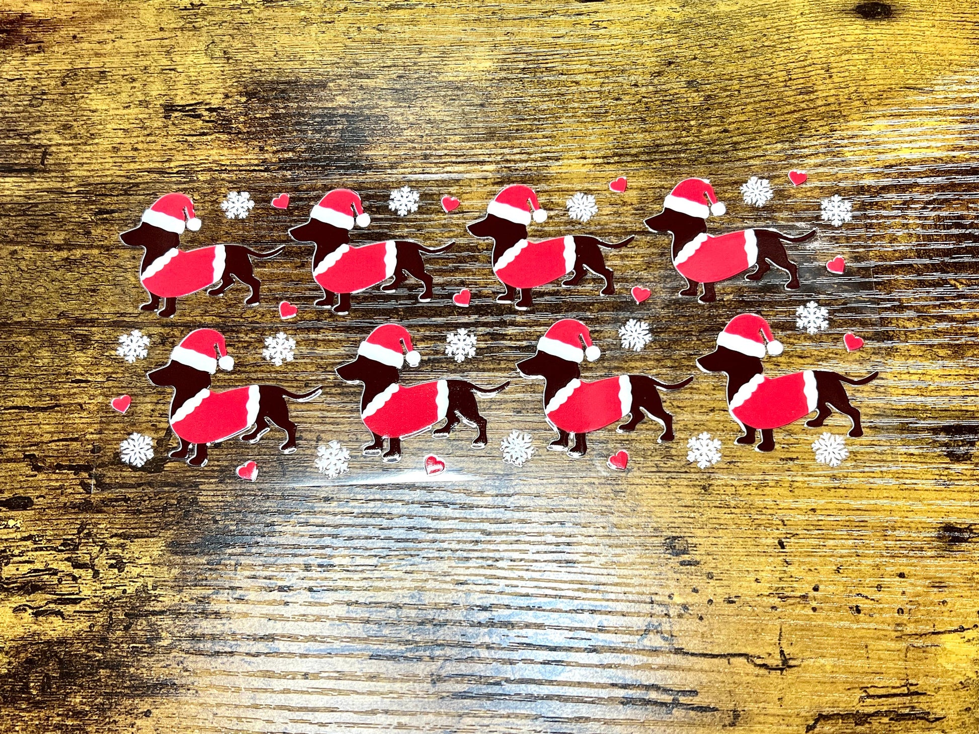 UVDTF Wrap Santa Dachshund 16oz Can Glass Mug Tumbler, Dachshund Wrap, Ready to apply, Double sided print, Permanent Adhesive