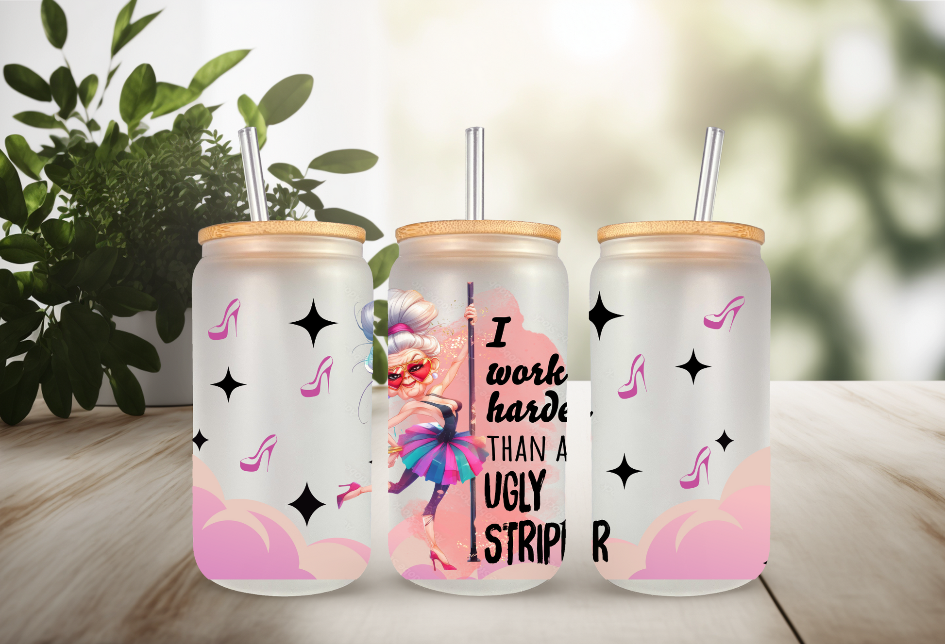This 16oz glass mug tumbler features a checkered design with a humorous, sarcastic "UVDTF Wrap Social Anxiety" print. Designed for easy application, the wrap uses a permanent waterproof adhesive, ensuring durability and resistance to moisture. Ideal for personalizing your drinkware with a witty touch, it offers both style and long-lasting performance.