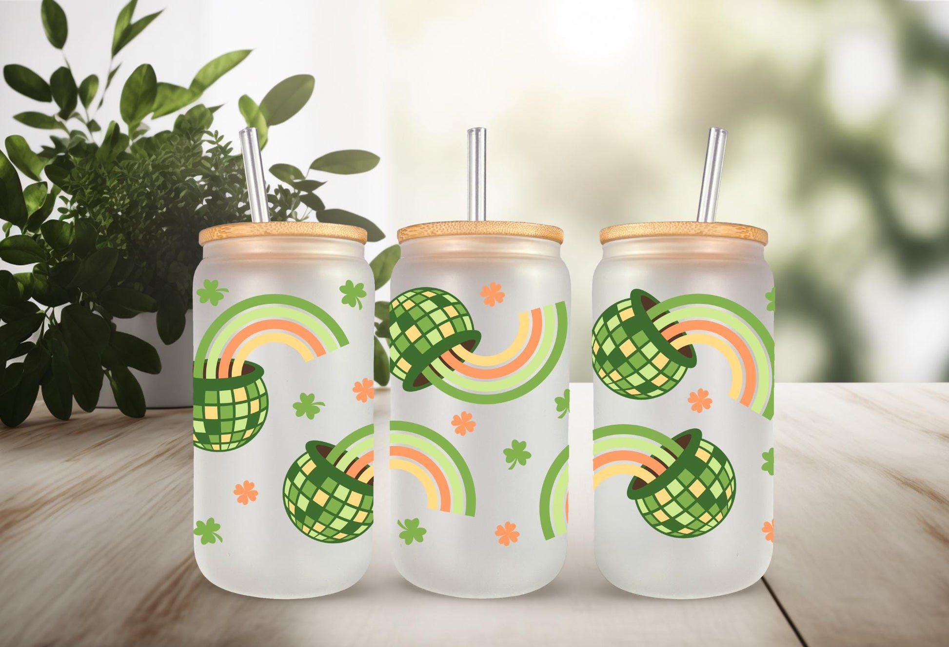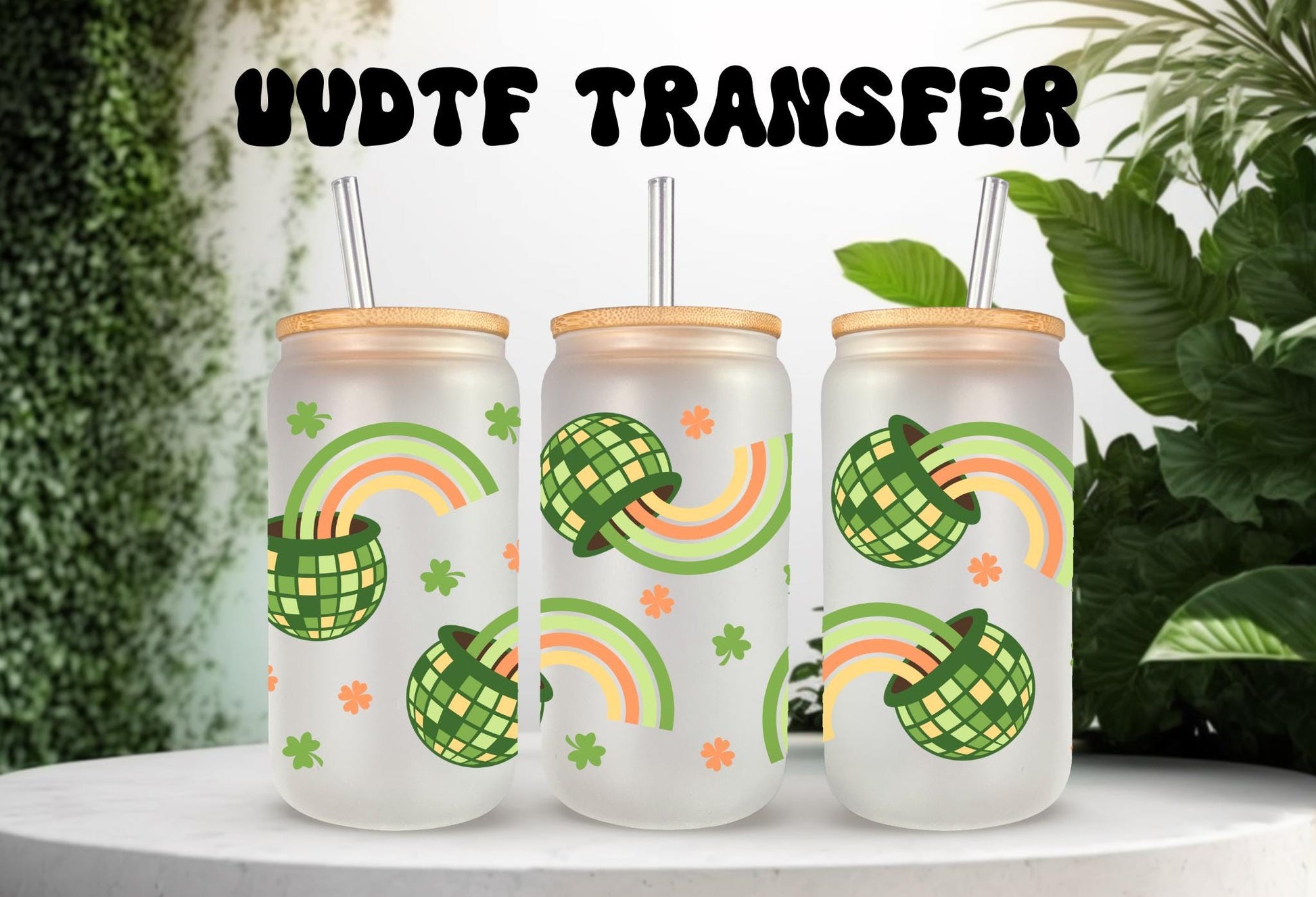 UVDTF Wrap Shamrock Rainbow Pot of Gold 16oz Can Glass Mug Tumbler, Ready to apply, Permanent Waterproof Adhesive