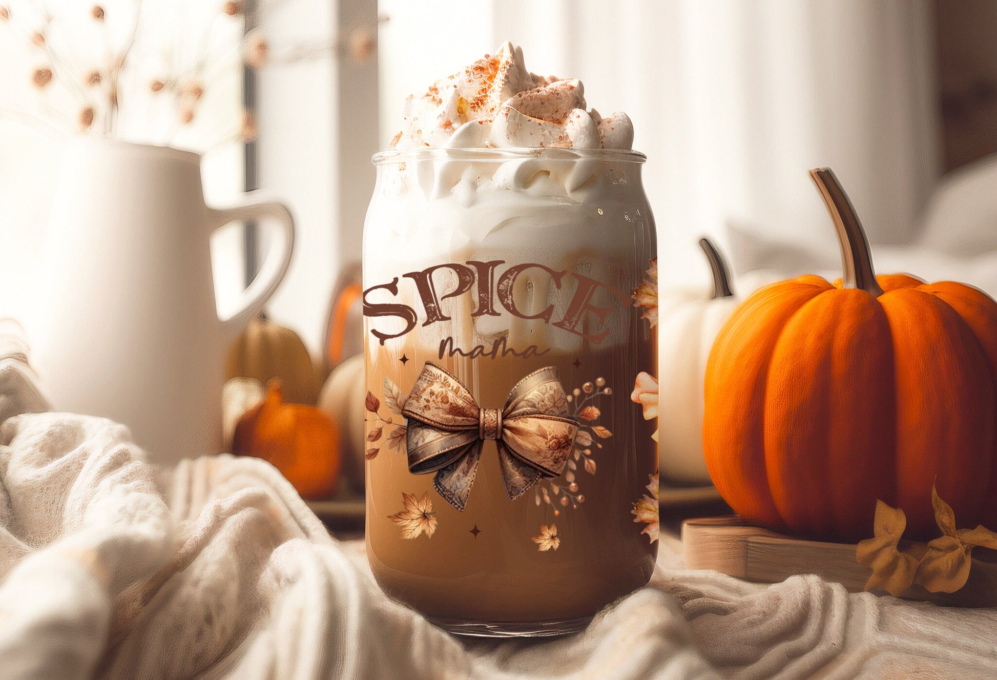 UVDTF Wrap Spice Mama Coquette Bows for 16oz Can Glass or 40oz Tumbler, Ready to apply, Permanent adhesive, DoubleSided option