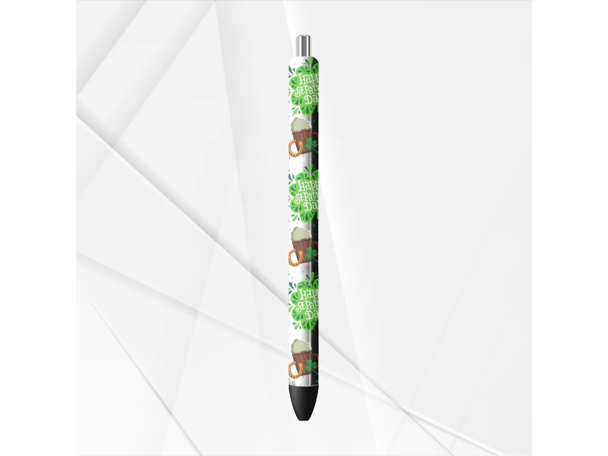 Enhance your St. Patrick's Day spirit with our UVDTF Pen Wrap. This permanent, waterproof adhesive is ready to apply and will turn any pen into a festive Clover Shamrock design. Perfect for decorating pens and celebrating with a touch of green.