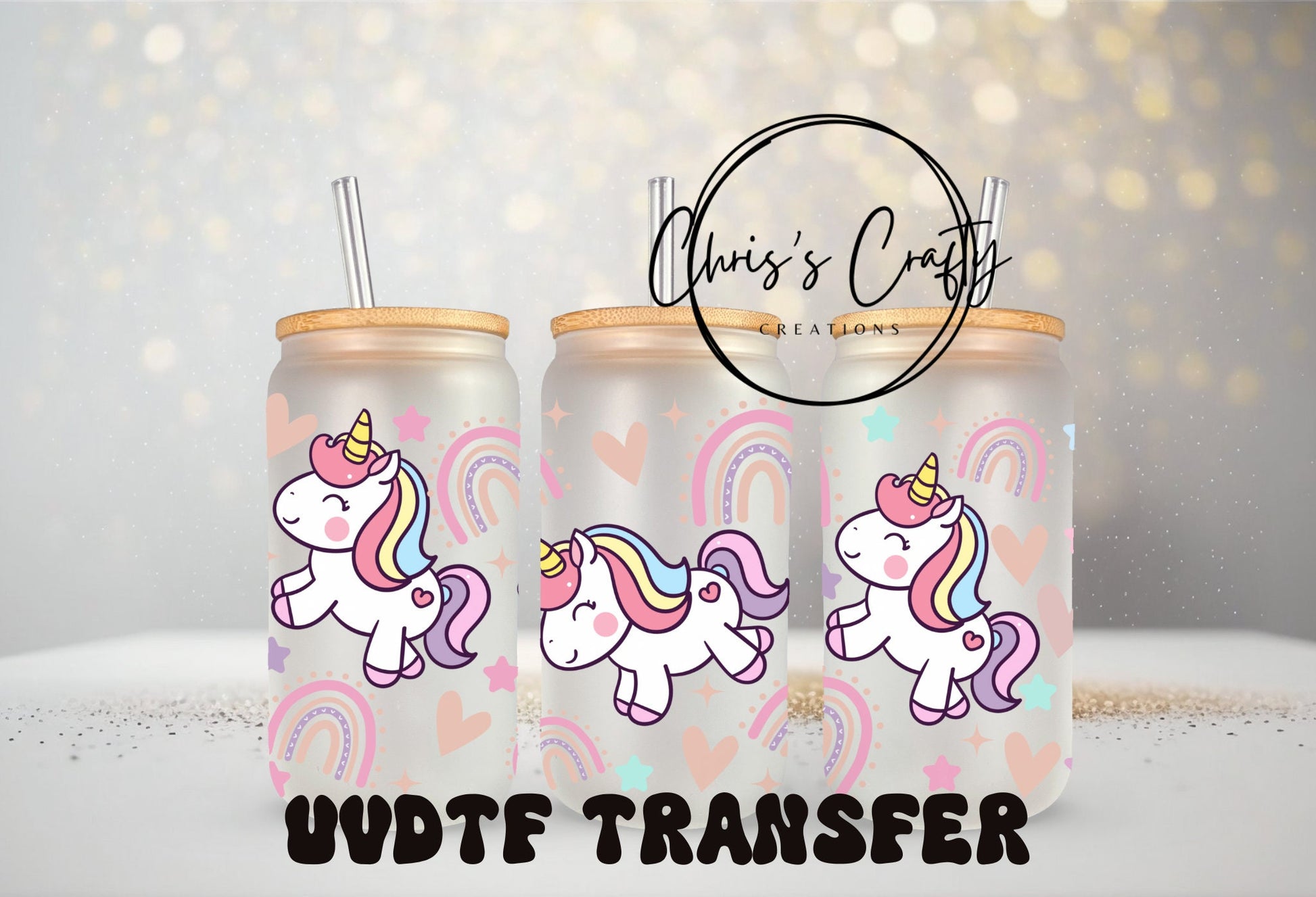 UVDTF Wrap Unicorns Rainbows 16 oz Can Glass Tumbler, Unicorn Wrap, Ready to Apply, Permanent Waterproof Adhesive