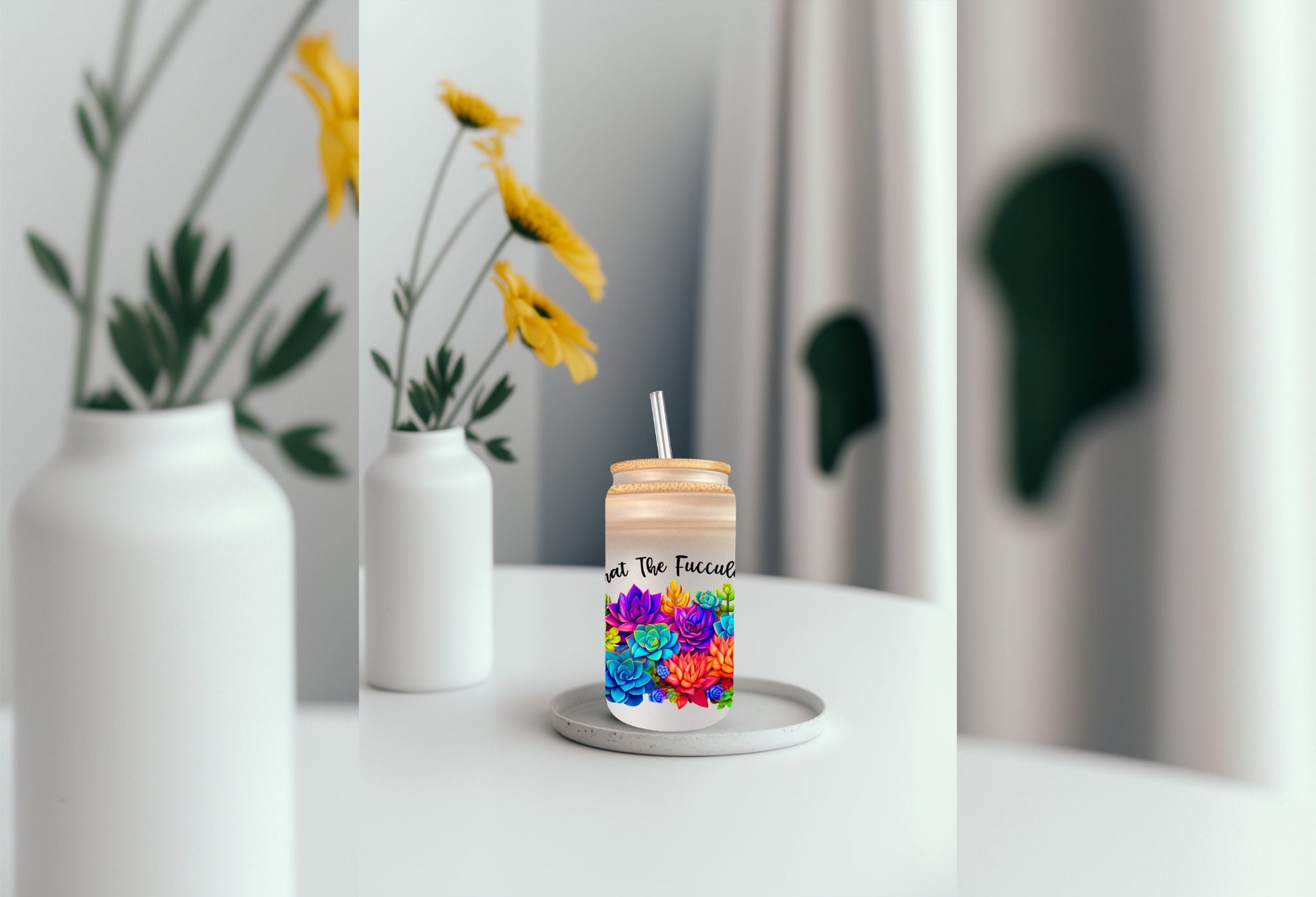 UVDTF Wrap Funny and Sarcastic, What the Fucculent 16 oz Can Glass, Mug, Tumbler, Ready to Apply, Permanent Adhesive Waterproof