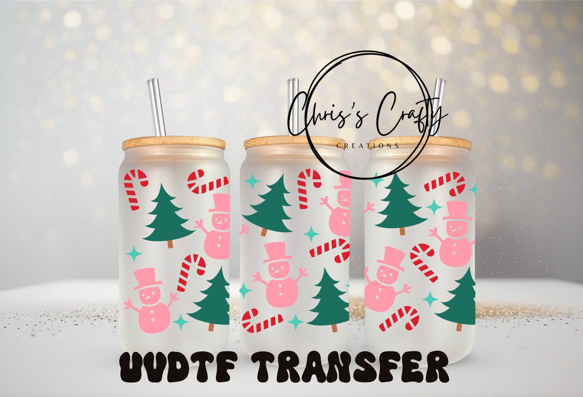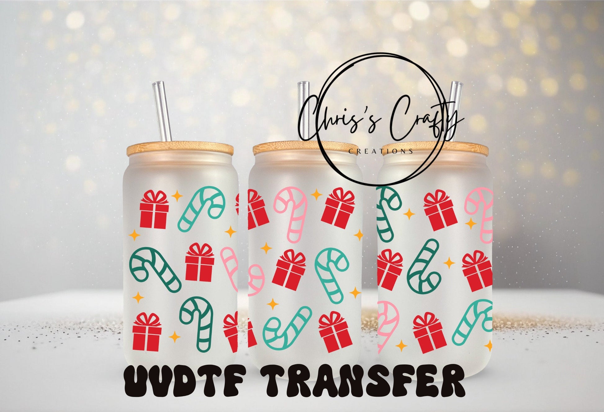 UVDTF WRAPS Christmas Wrap Bundle Set of 4 for 16oz Can Glass Mug Tumbler, Ready to Apply, Permanent Waterproof Adhesive