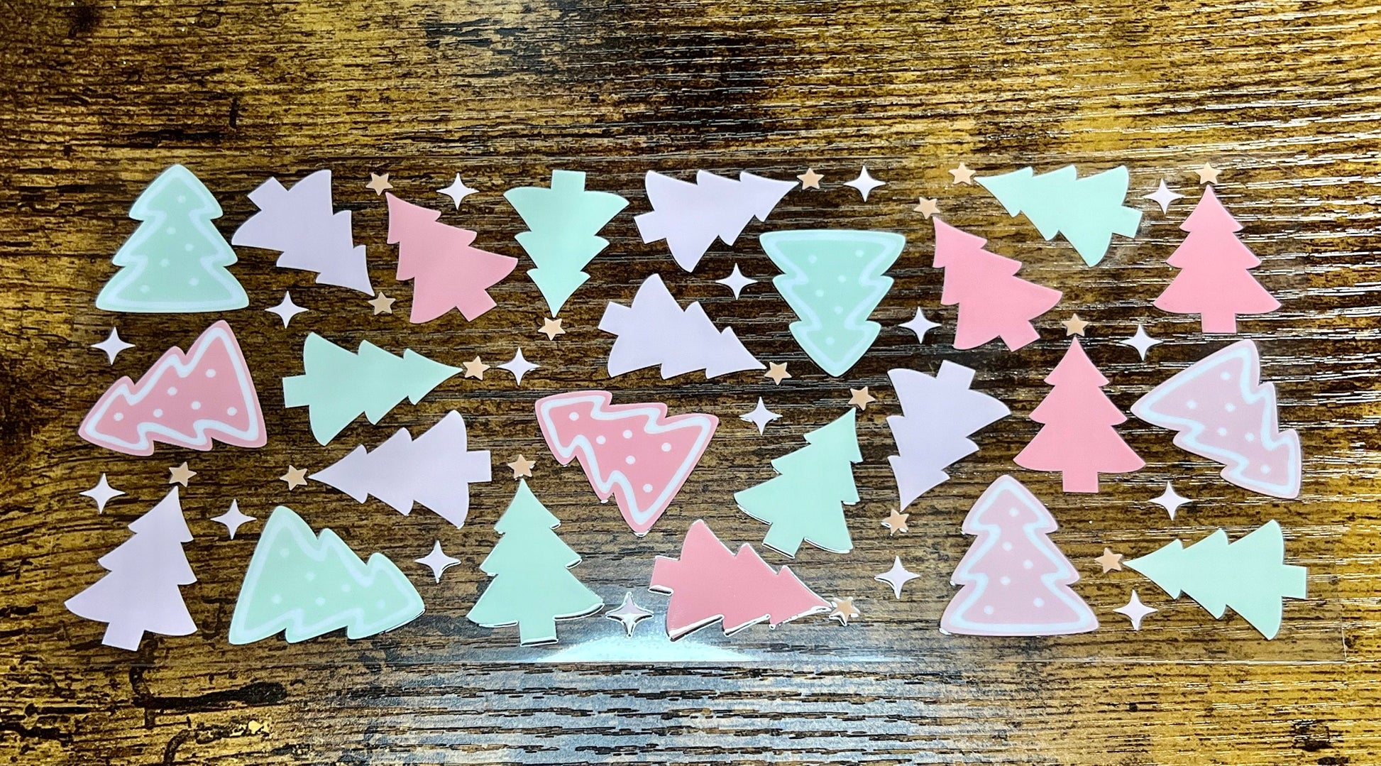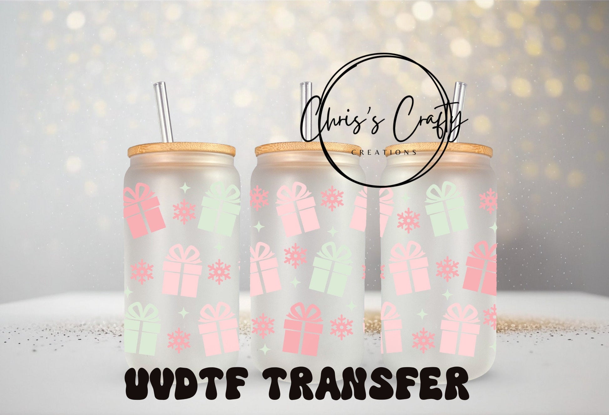 UVDTF WRAPS Pastel Pink Christmas Wrap Bundle Set of 4 for 16oz Can Glass Mug Tumbler, Ready to Apply, Permanent Waterproof Adhesive